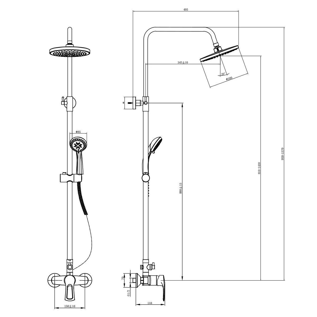 - Верхняя поворотная душевая лейка «Тропический дождь» Ø200 мм с функцией легкой очистки