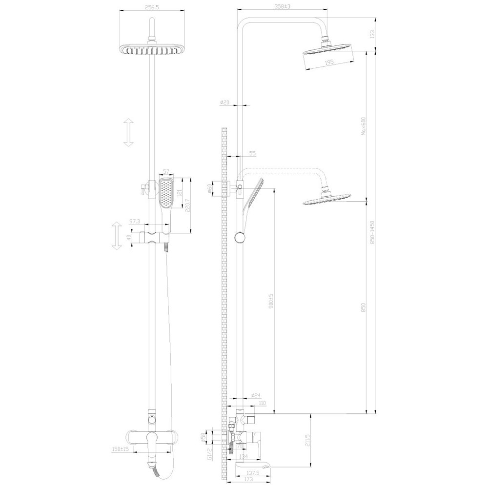 - Верхняя поворотная душевая лейка «Тропический дождь» 195x256 мм с функцией легкой очистки