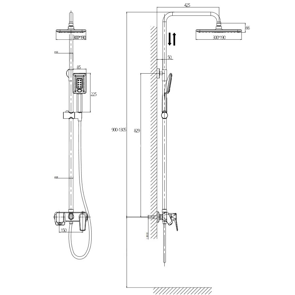 Длина душевого шланга, мм