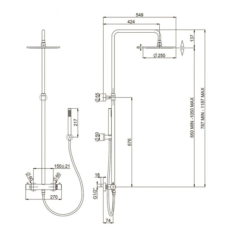 Душевая система с термостатом Paini Cox 78PW689TH никель (PW)