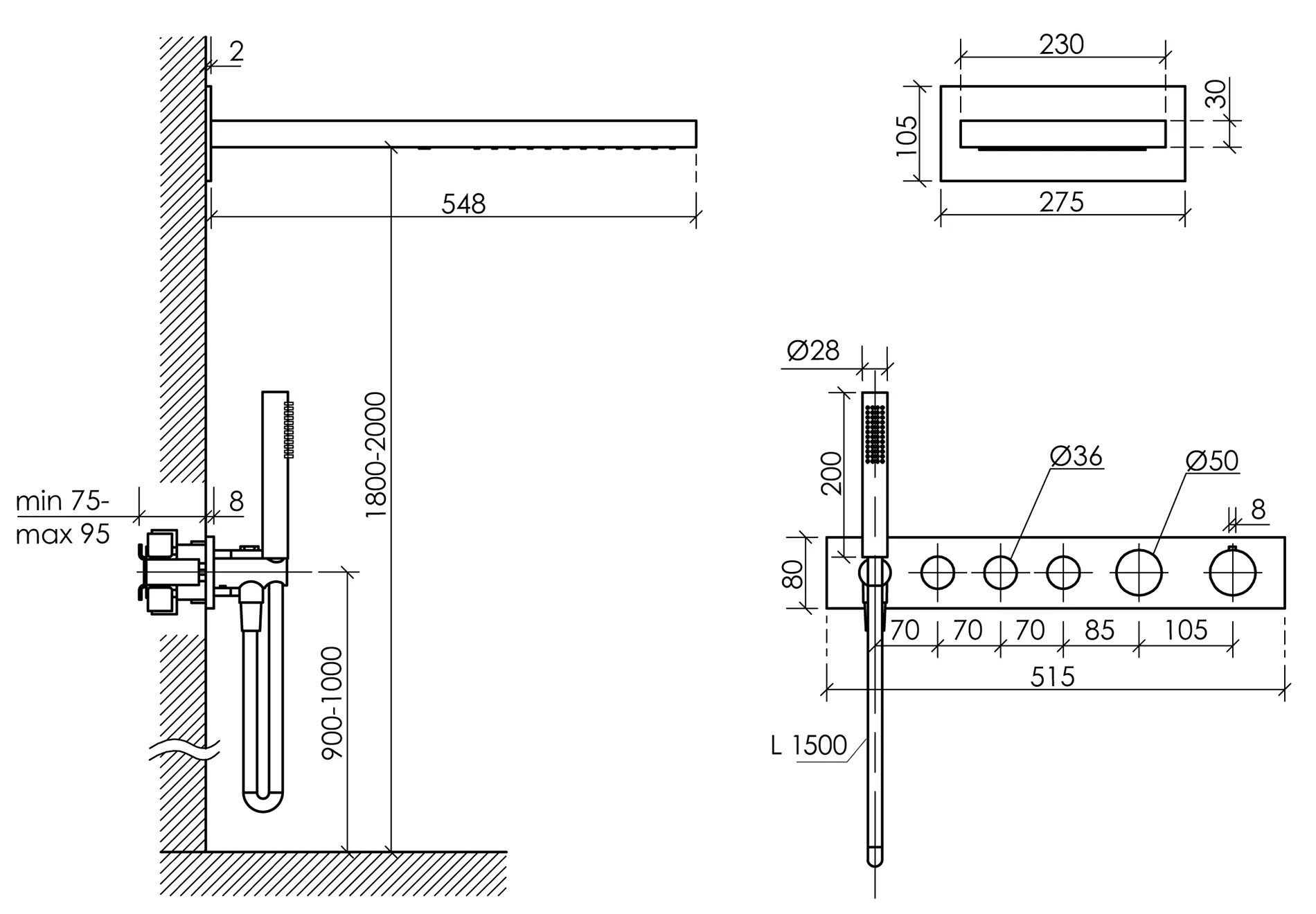 Душевая система Sancos Linn SC9023GG с термостатом, с внутренней частью, вороненая сталь