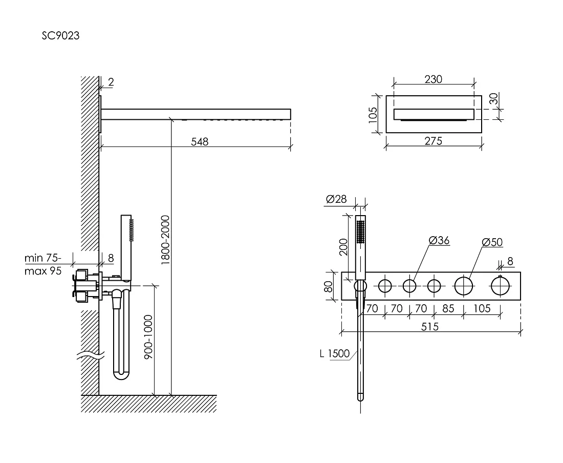Длина душевого шланга, мм