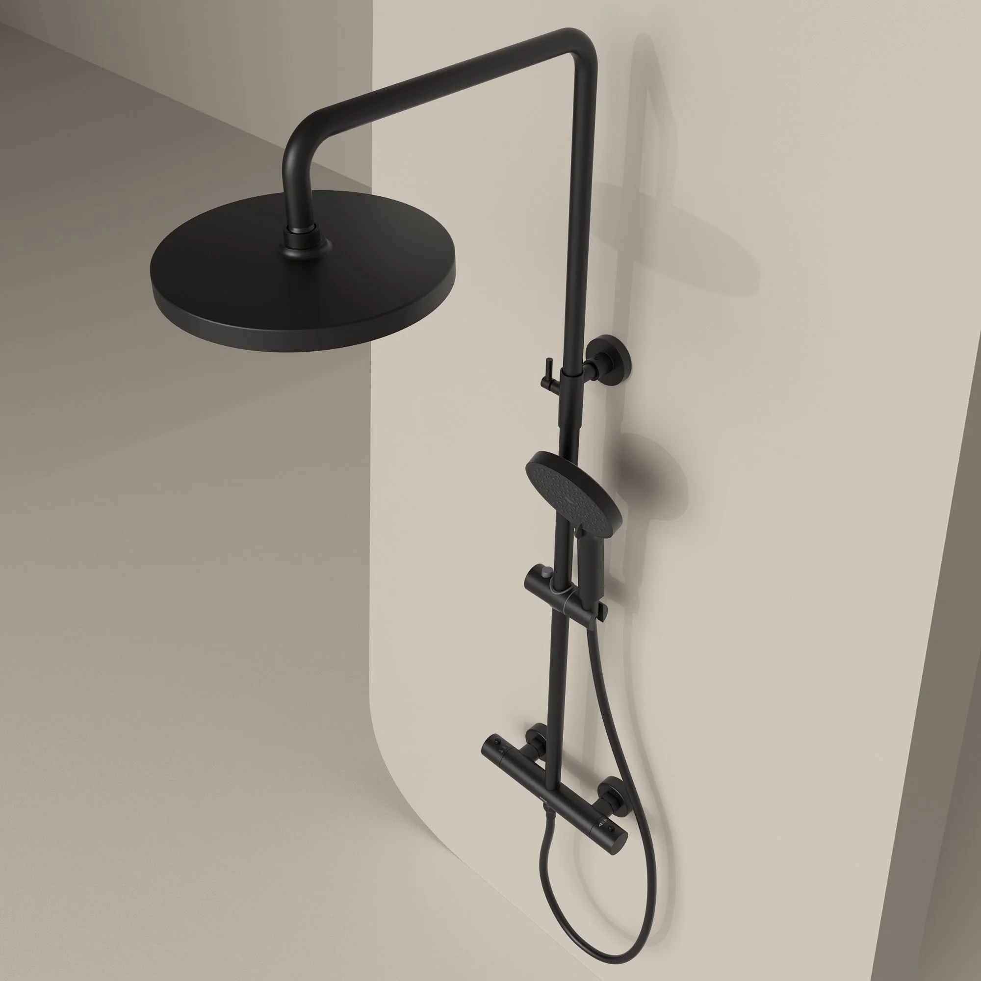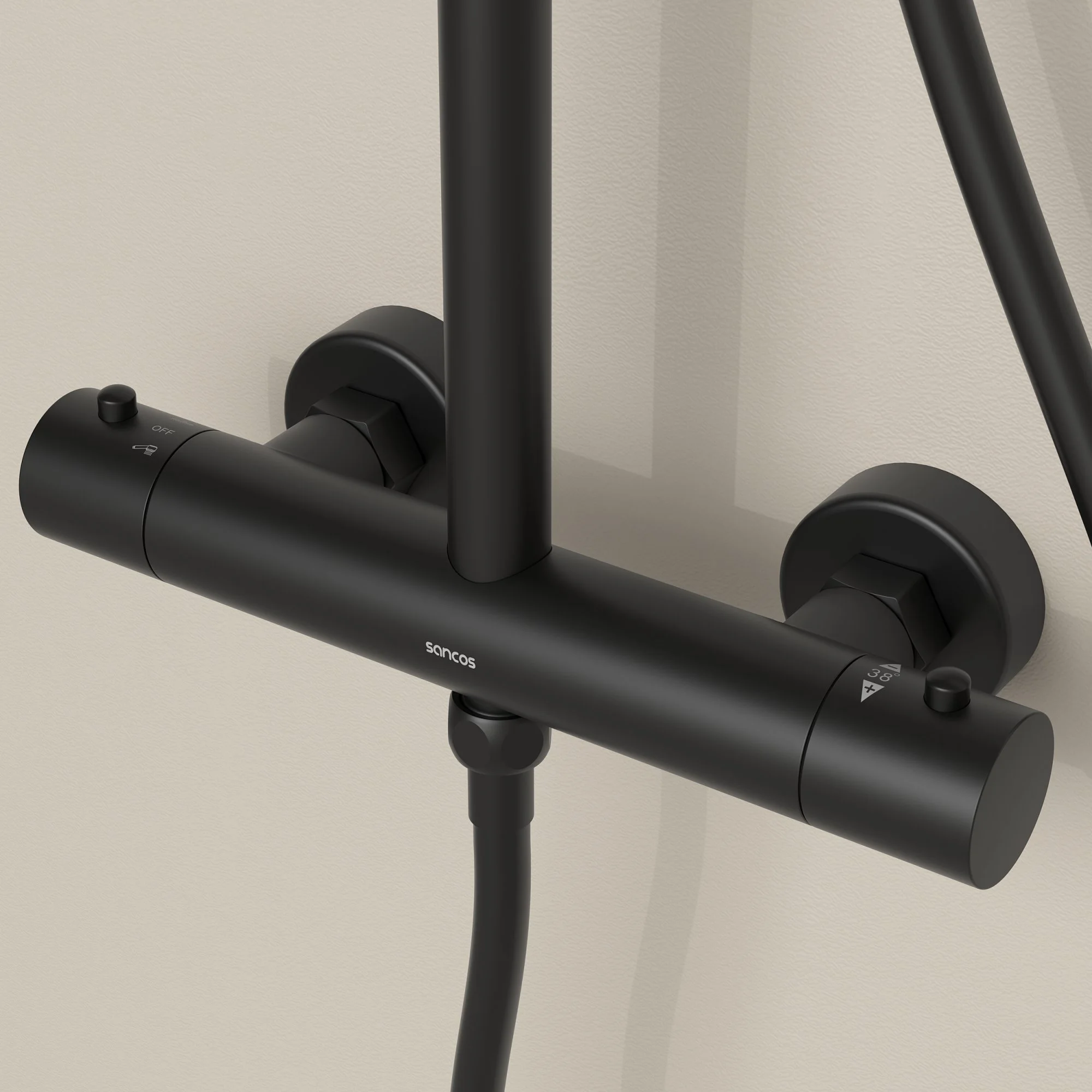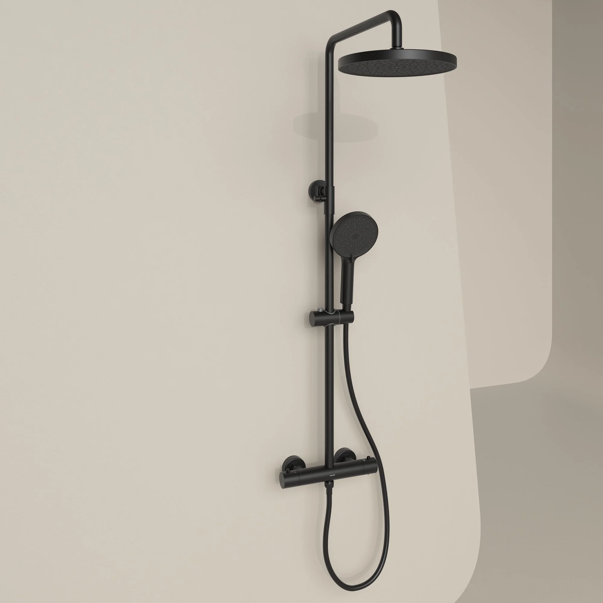 Душевая система SANCOS Teo SC11001MB c термостатом, с регулировкой по высоте черный матовый
