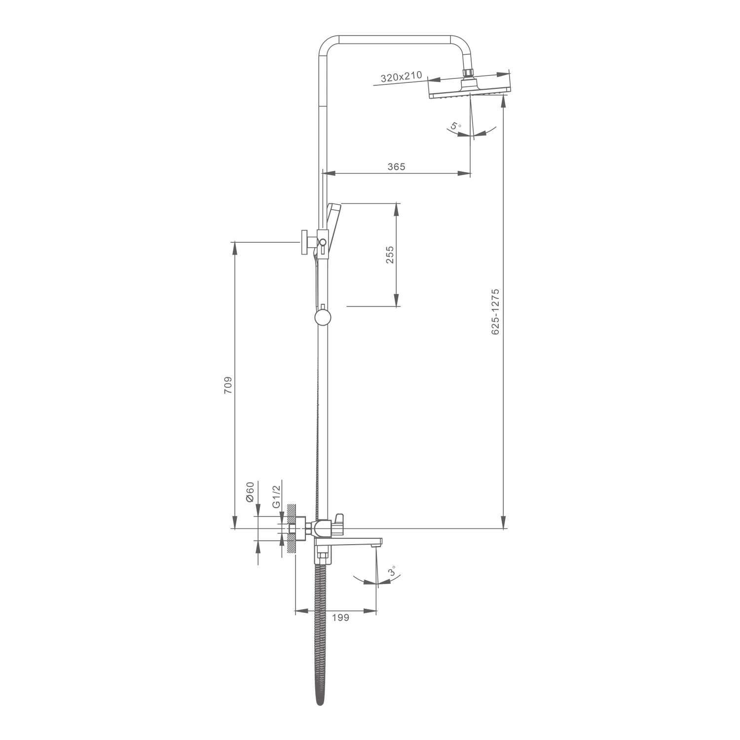 Длина душевого шланга, мм