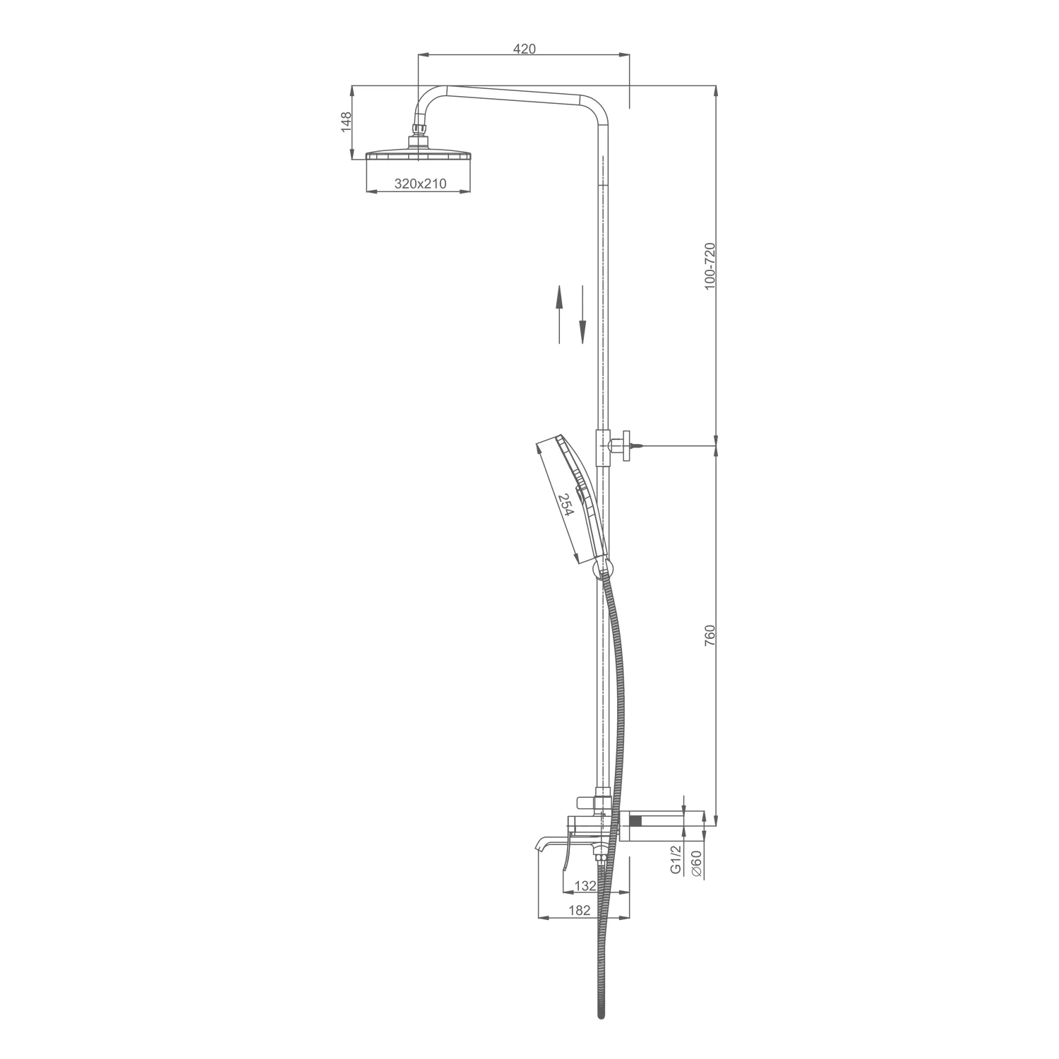 Длина душевого шланга, мм