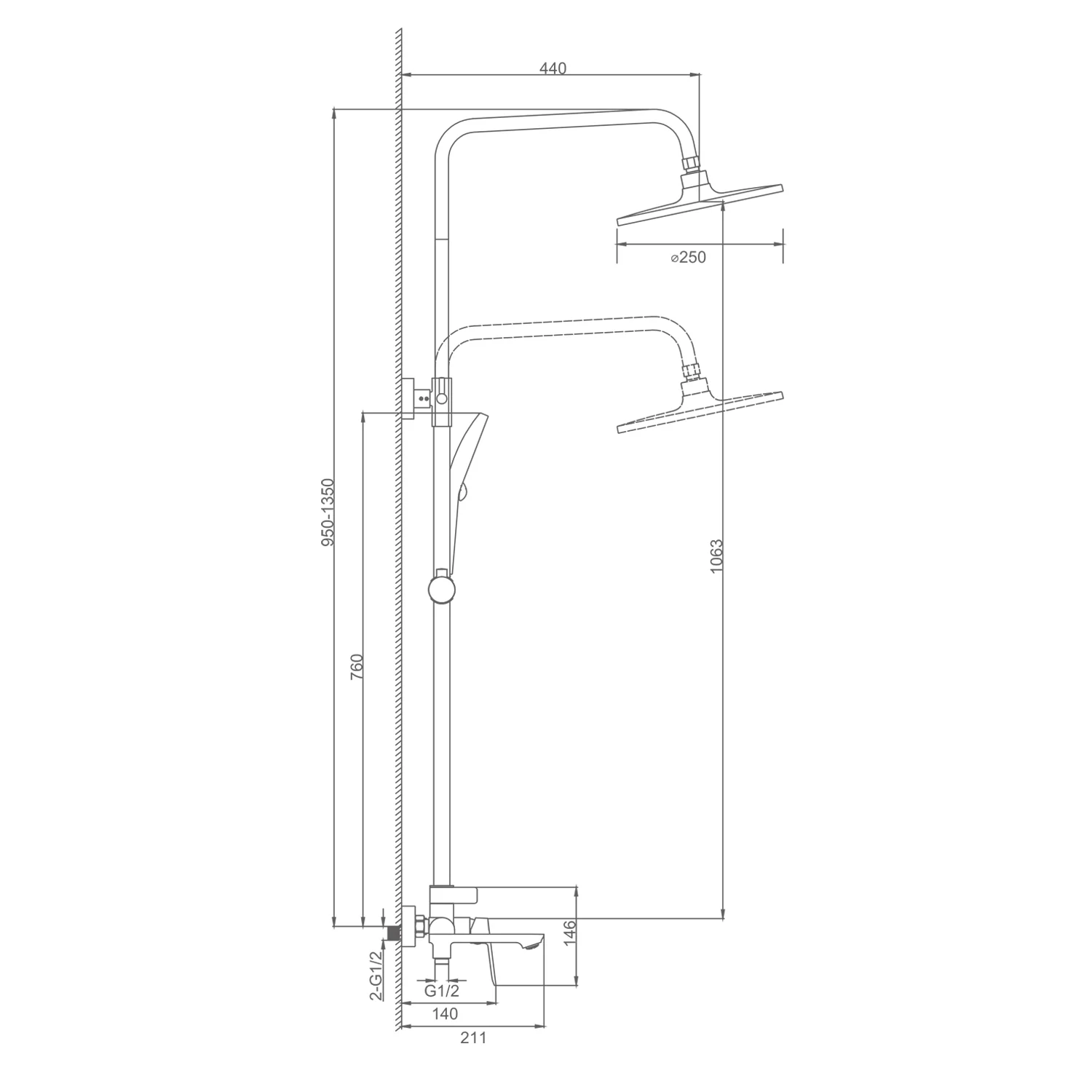 Длина душевого шланга, мм