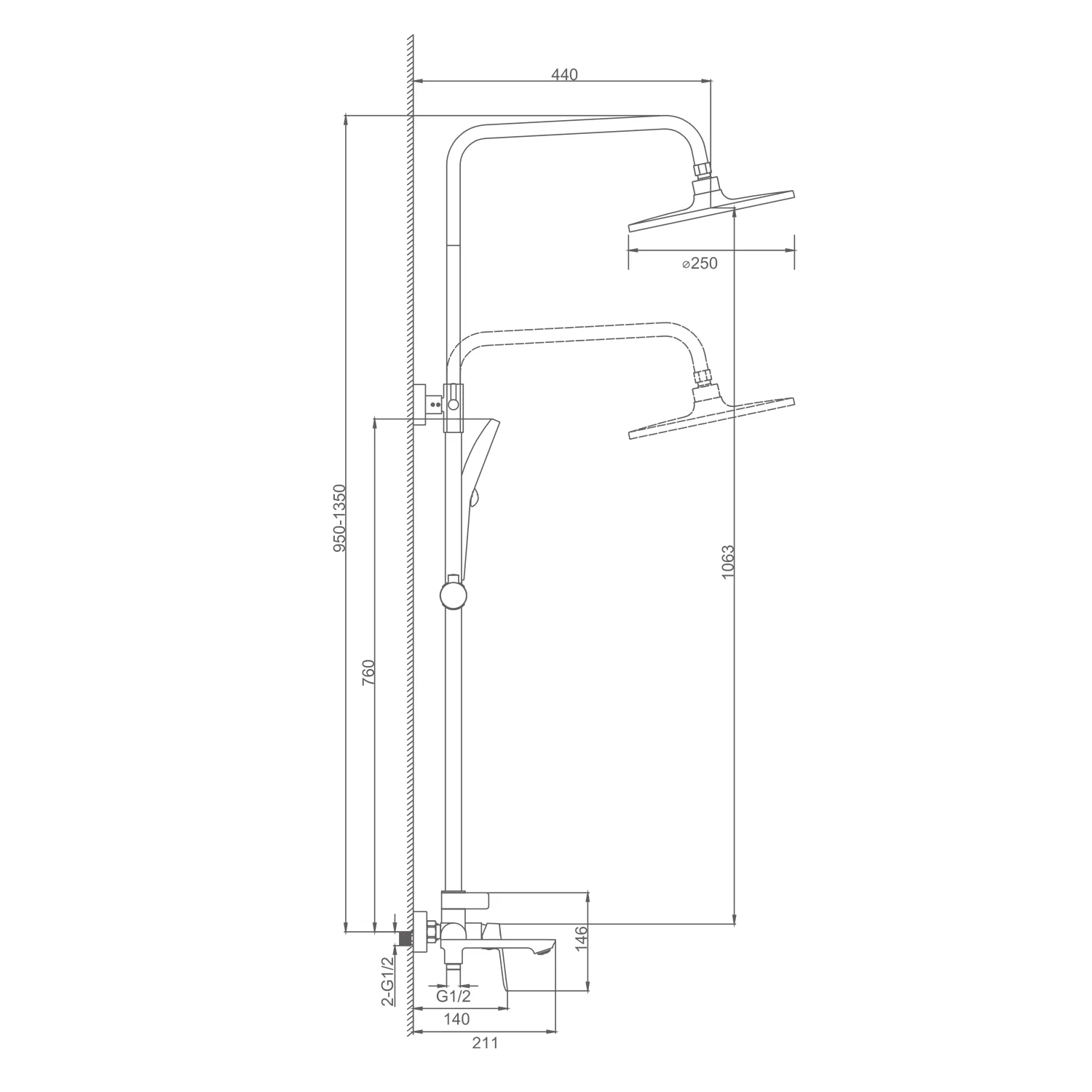 Длина душевого шланга, мм