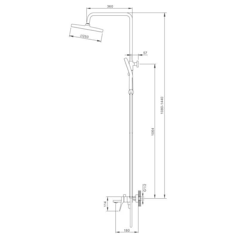 • Регулируемая душевая штанга: 1080-1440 мм