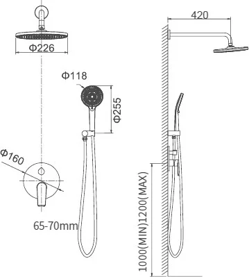 настенный держатель,шланговое подключение,верхний душ,душевой гарнитур,переключатель потоков