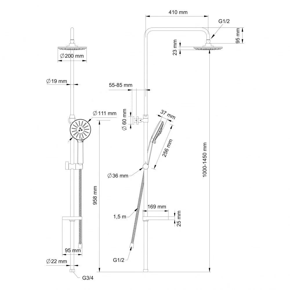 - верхний душ (душевая головка) с регулировкой наклона;
