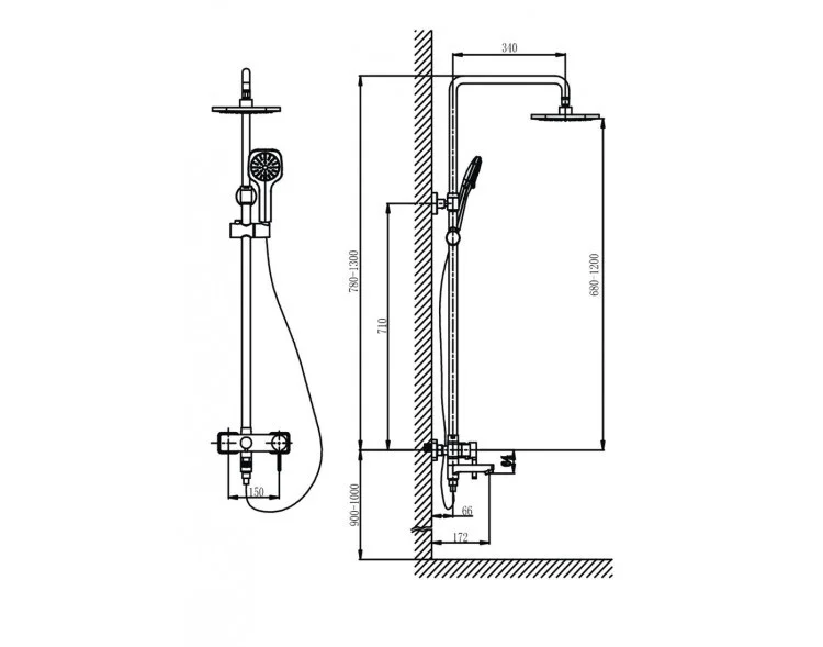 - Штанга душевой системы регулируется по высоте
