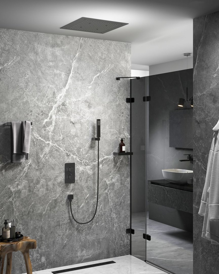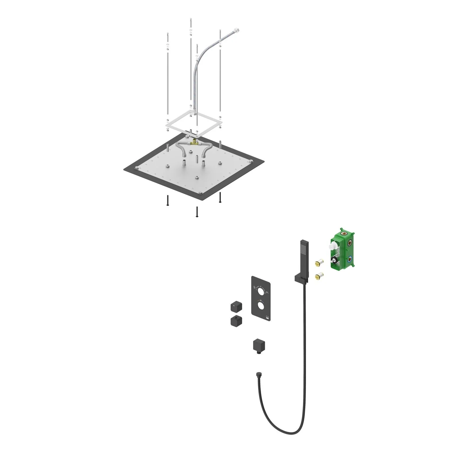 - Душевая система скрытого монтажа, с термостатом с квадратной лейкой (латунь) в стиле модерн