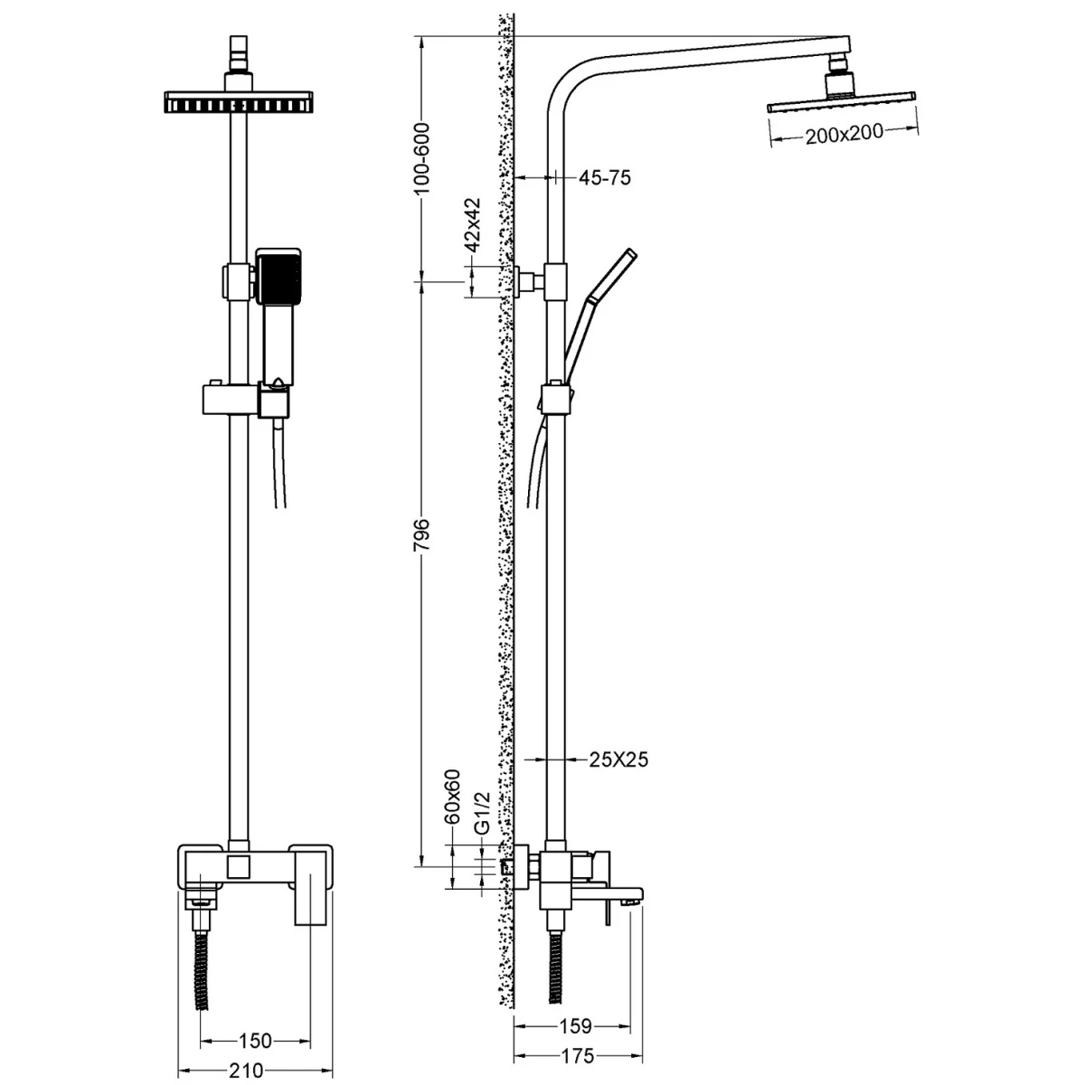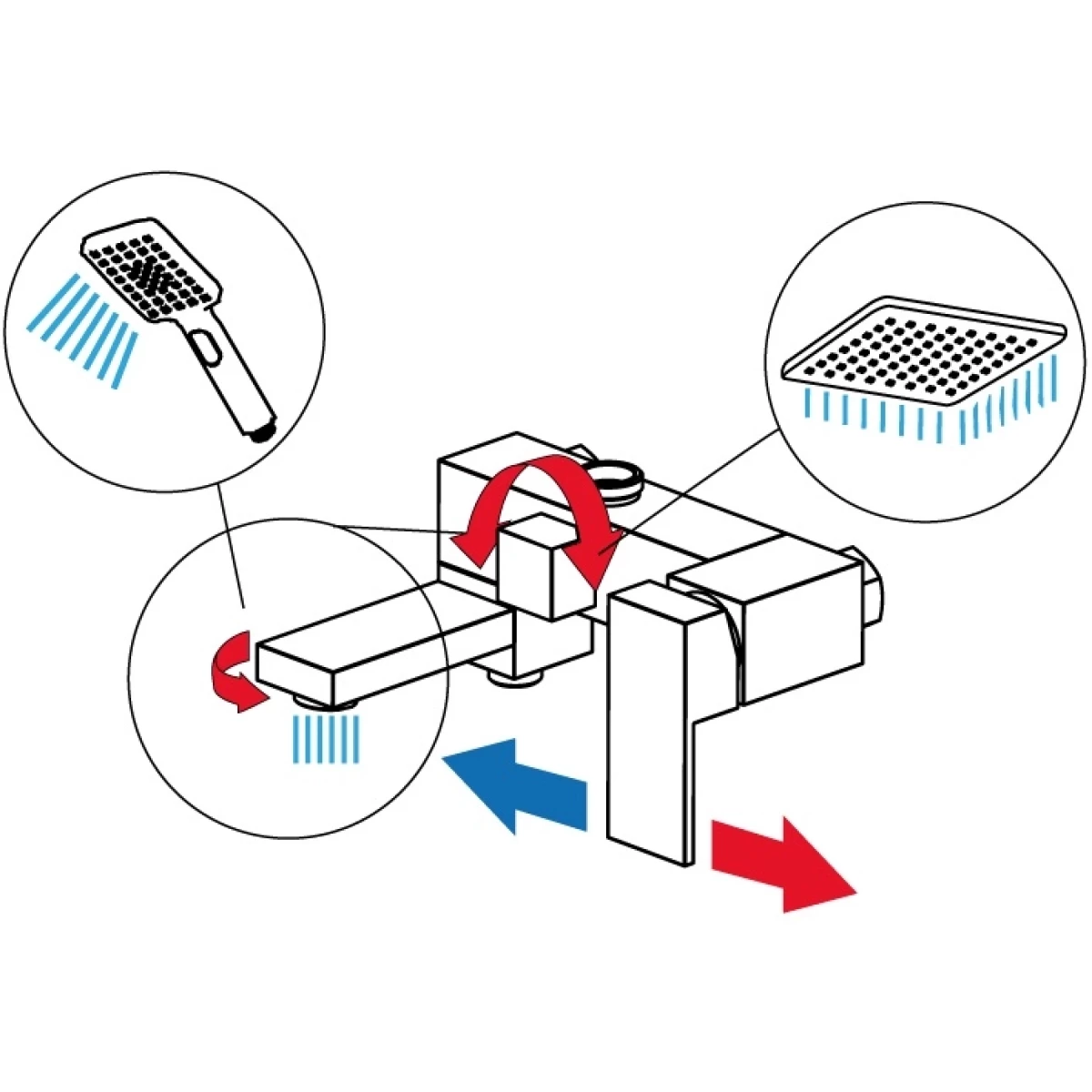 - Душевая система для ванной с квадратной лейкой в стиле модерн