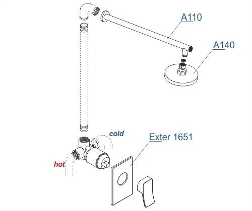 Входит в комплектСмеситель для душа Exter 1651 Верхняя душевая насадка A140 Верхний излив для душа A110