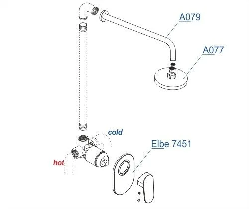 Входит в комплектСмеситель для душа Elbe 7451 Верхняя душевая насадка A077 Настенный верхний излив для душа A079