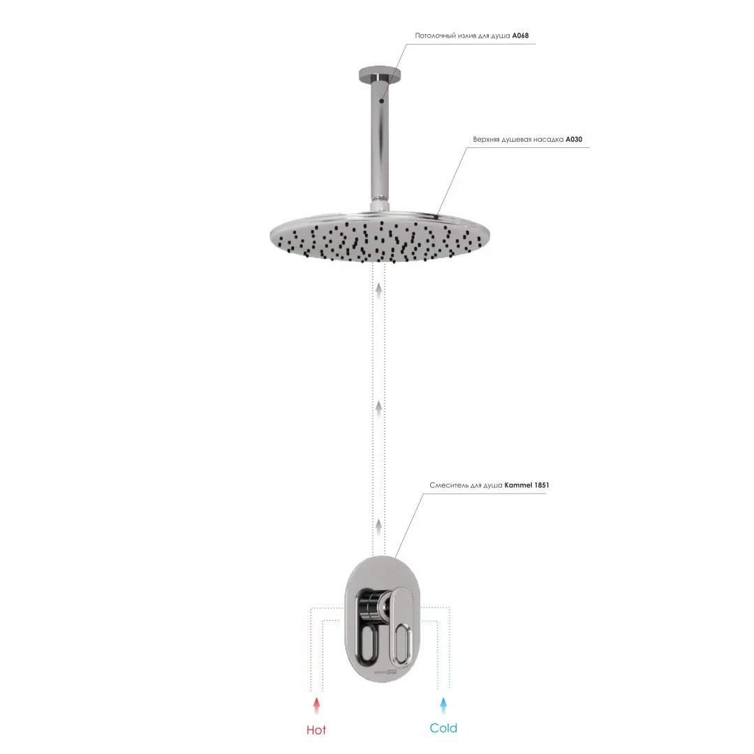 Входит в комплектСмеситель для душа Kammel 1851 Верхняя душевая насадка A030 Потолочный излив для душа A068