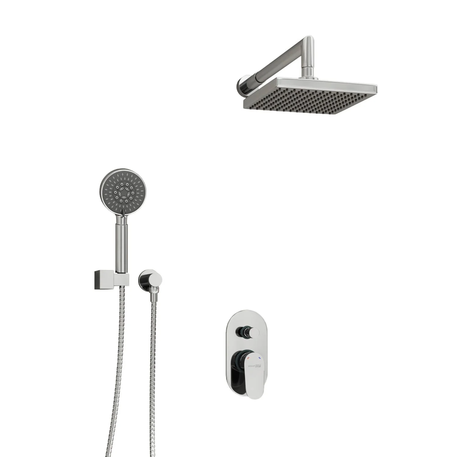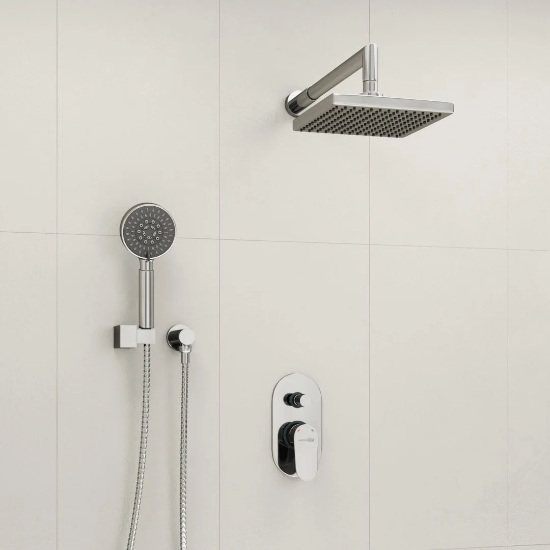 Смеситель для ванны и душа Donau 5361, Подключение шланга A021, Верхняя душевая насадка A028, Верхний излив для душа A019, Лейка 5-функциональная A036, Настенный держатель лейки, поворотный А011, Шланг для душа 1500 мм A010