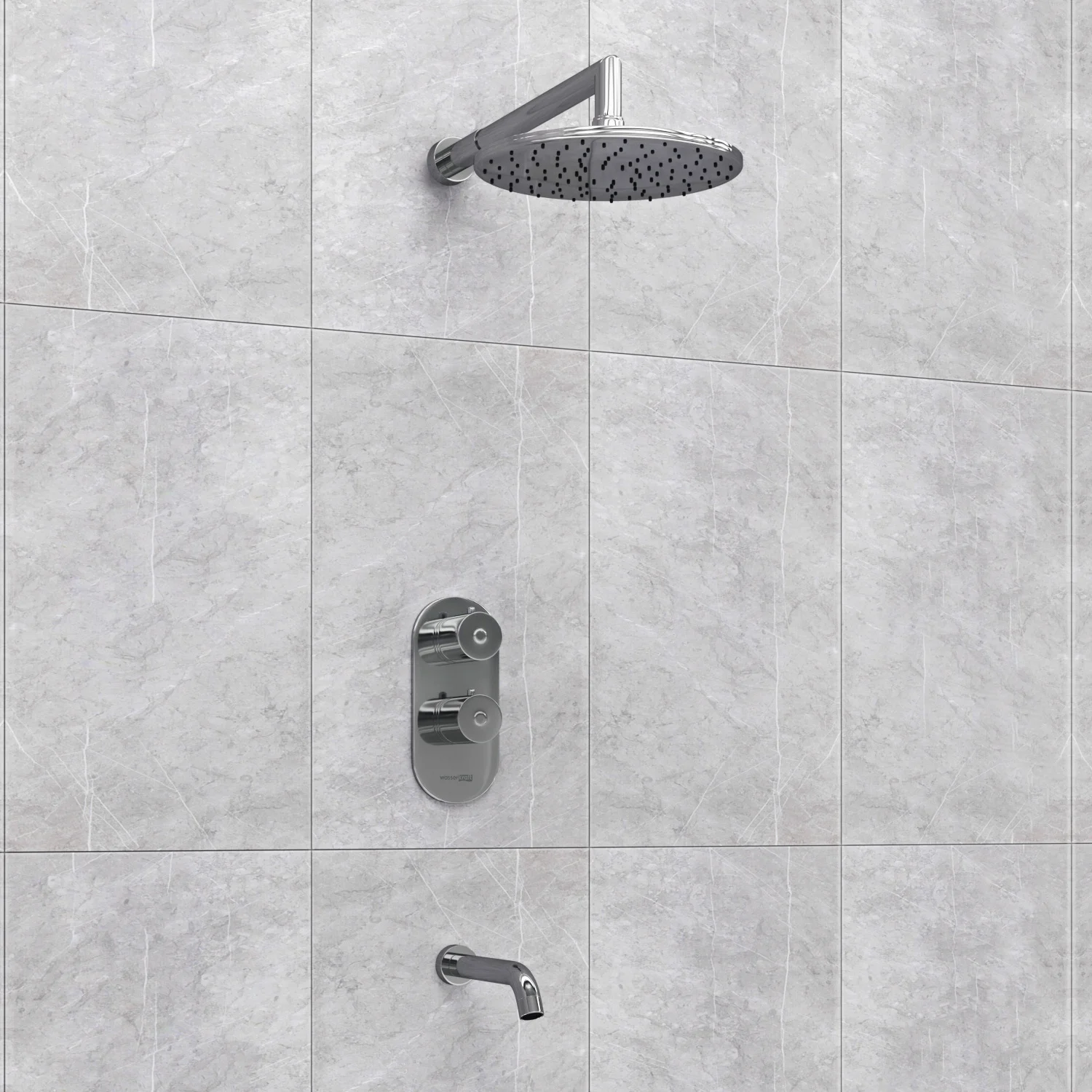 характеристики термостатический картридж Vernet (франция) керамический поворотный переключатель на душ Flühs (германия) обратный клапан Neoperl комплект скрытого монтажа наружная часть смесителя душевая насадка Ø 250 мм, 135 форсунок, ABS-пластик входит в комплект термостатический смеситель для ванны и душа Berkel 4833 Thermo верхняя душевая насадка A030 верхний излив для душа A019 настенный излив для ванны A018 материал латунь, ABS-пластик покрытие хромоникелевое