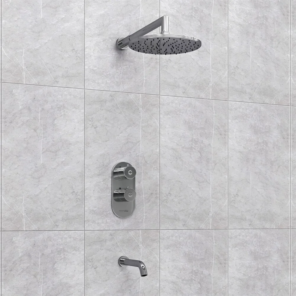 Термостатический картридж Vernet (Франция), Керамический поворотный переключатель на душ Flühs (Германия), Обратный клапан Neoperl, Комплект скрытого монтажа, Наружная часть смесителя, Душевая насадка Ø 250  мм, 135 форсунок, ABS-пластик