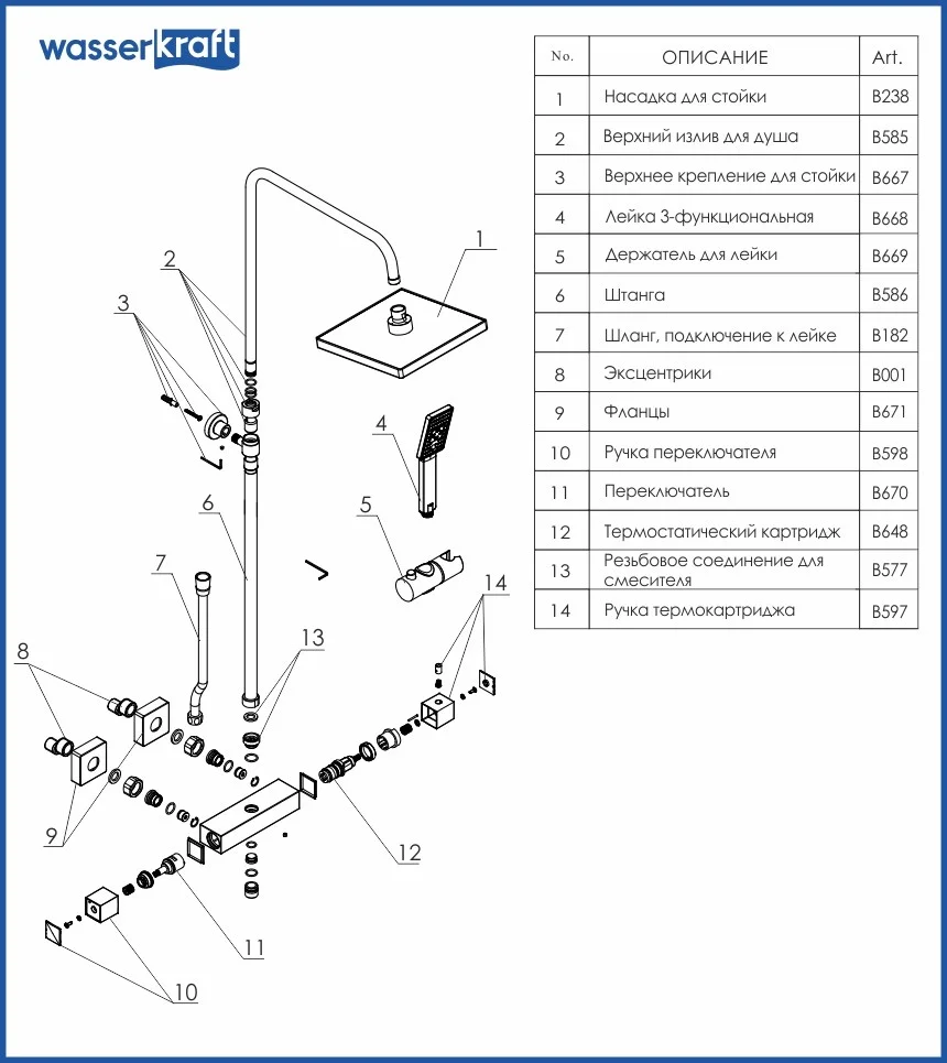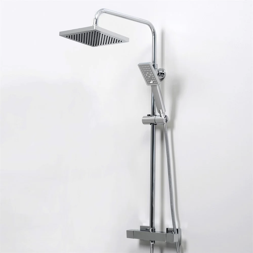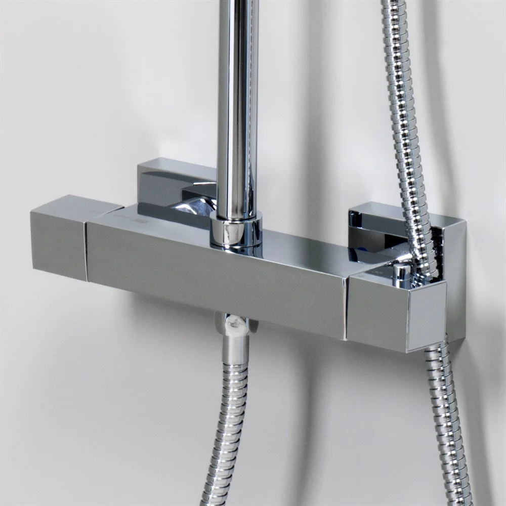 Входит в комплектДушевая насадка 200х200 мм, 144 форсунки, ABS-пластик Стойка для душа, Ø 22 мм регулируемая по высоте Лейка 3-функциональная с системой защиты от известковых отложений Шланг металлический 1500 мм, подключение к лейке Термостатический смеситель Термостатический картридж Vernet (Франция)
