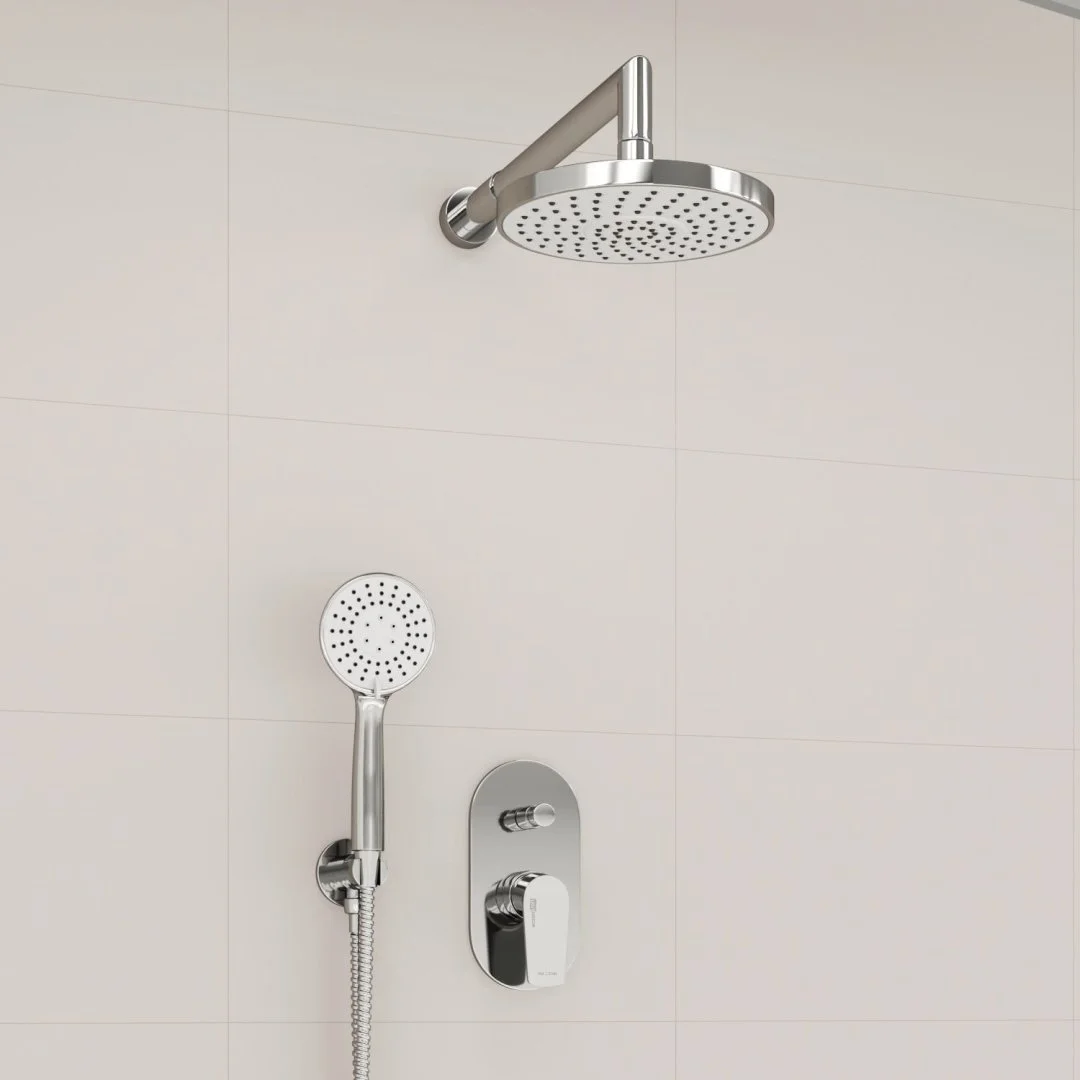 Характеристики Керамический картридж 35мм, Sedal (Испания) Автоматический кнопочный переключатель на душ Душевая насадка Ø 200 мм, 115 форсунок, ABS-пластик Лейка 3-функциональная с системой защиты от известковых отложений Комплект скрытого монтажа Наружная часть смесителя