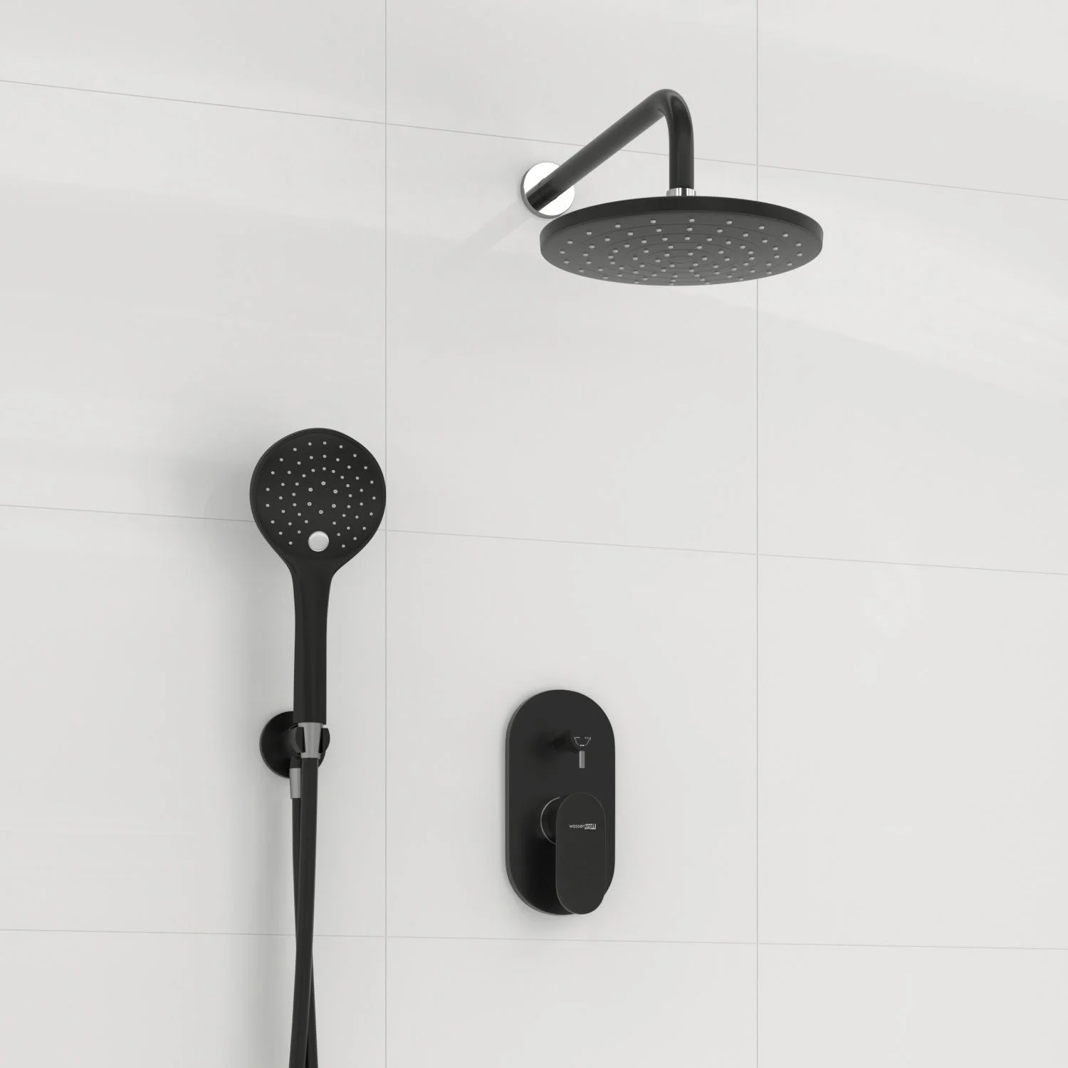 Керамический картридж 35мм, Sedal (Испания)Керамический поворотный переключательДушевая насадка Ø 225 мм, 76 форсунок, ABS-пластикЛейка 3-функциональная с системой защиты от известковых отложенийКомплект скрытого монтажаНаружная часть смесителя