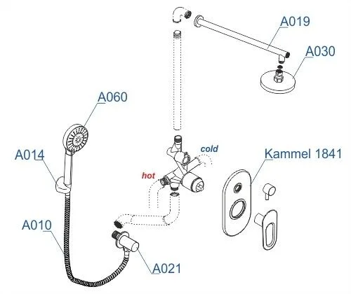 Входит в комплектСмеситель для ванны и душа Kammel 1841