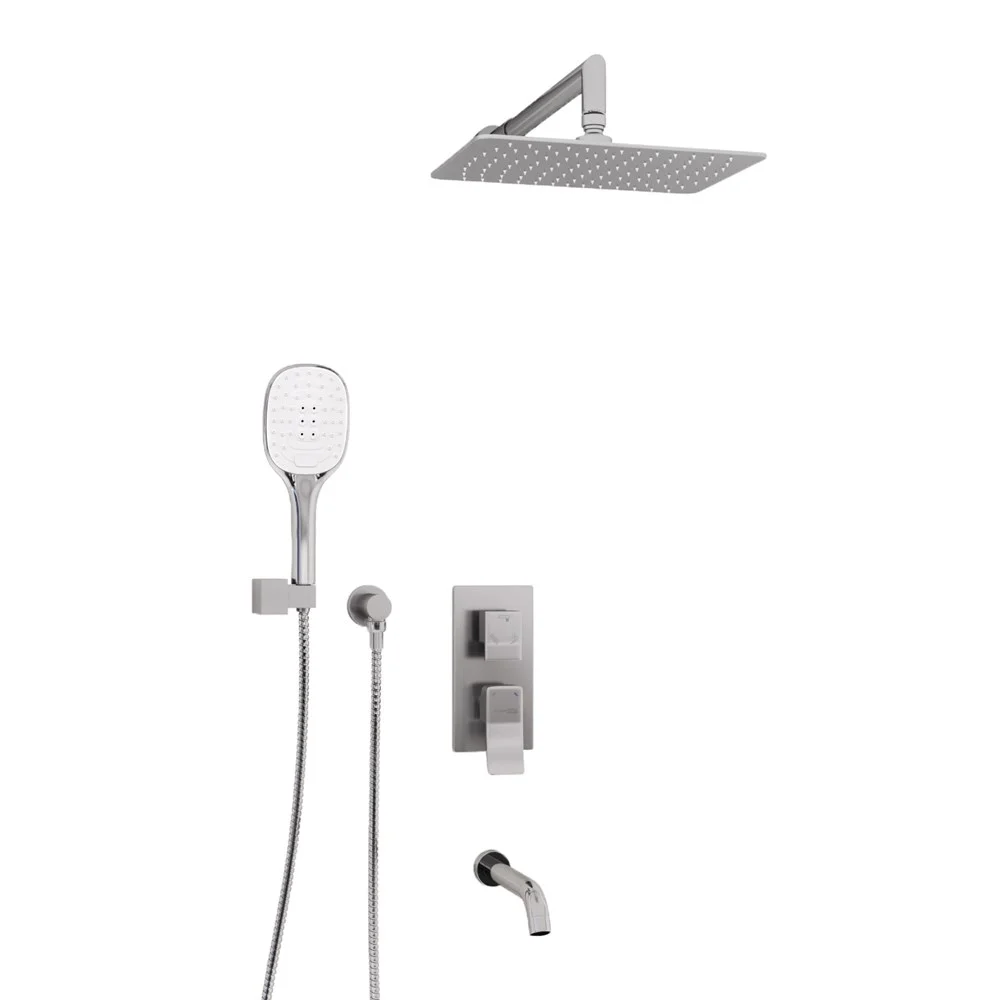 Переключатель на 3 выхода, Керамический картридж  40мм, Sedal (Испания), Керамический поворотный переключатель, Душевая насадка 300х200 мм, 112 форсунок, нержавеющая сталь, Комплект скрытого монтажа, Наружная часть смесителя