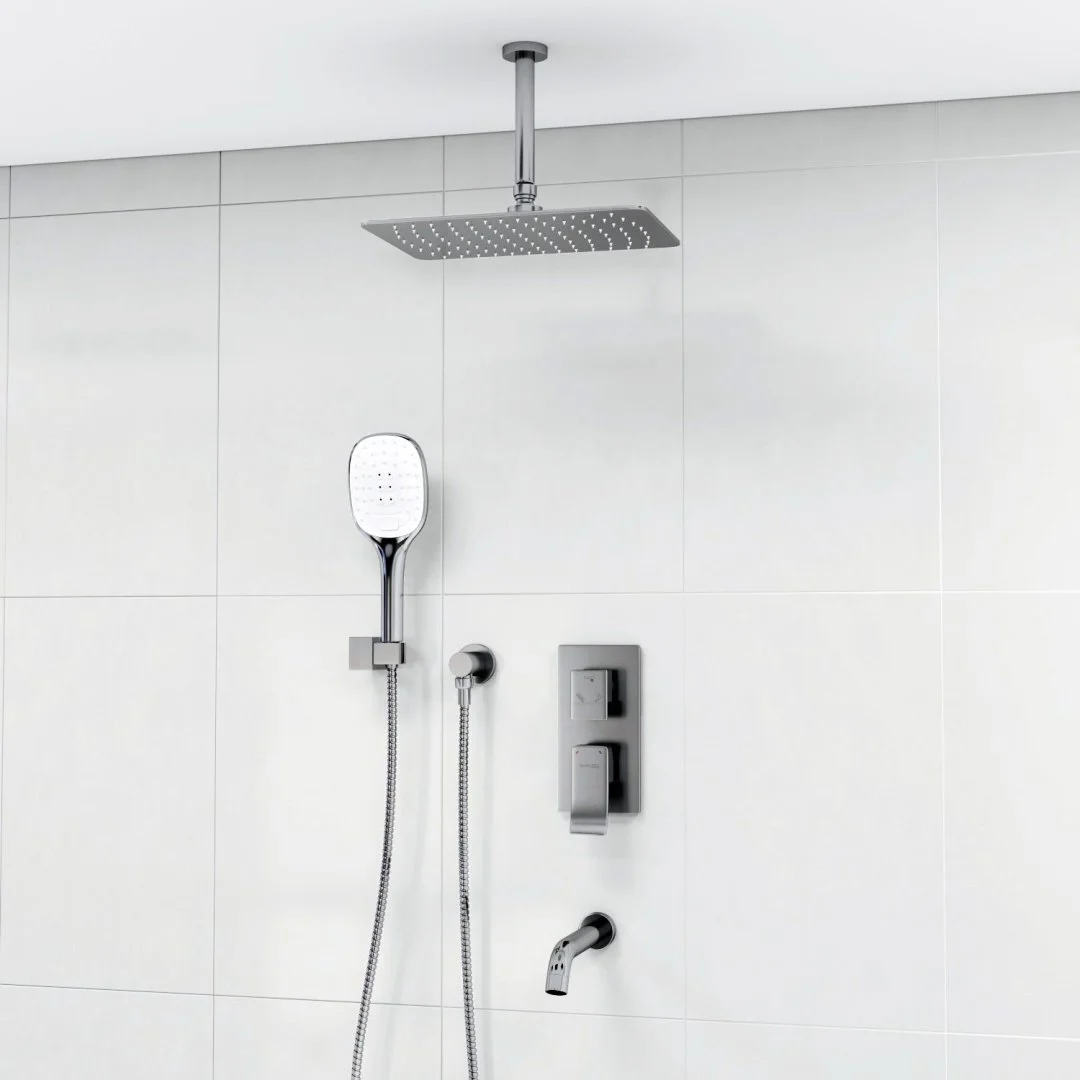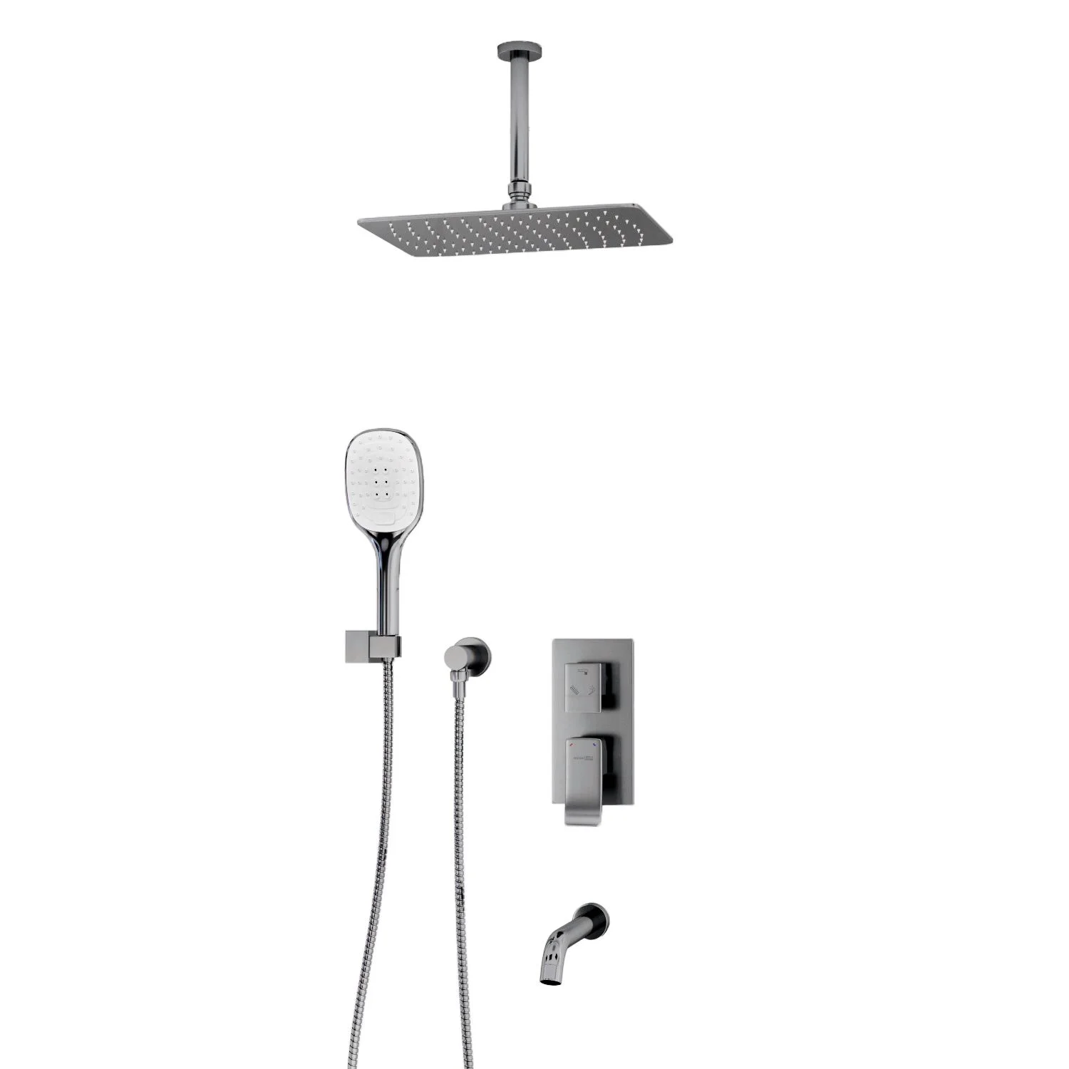 Смеситель для ванны и душа Aller 10671, Подключение шланга A021, Верхняя душевая насадка A069, Потолочный излив для душа A068, Лейка 3-функциональная A062, Настенный держатель лейки, поворотный А011, Шланг для душа 1500 мм A010, Настенный излив для ванны A018