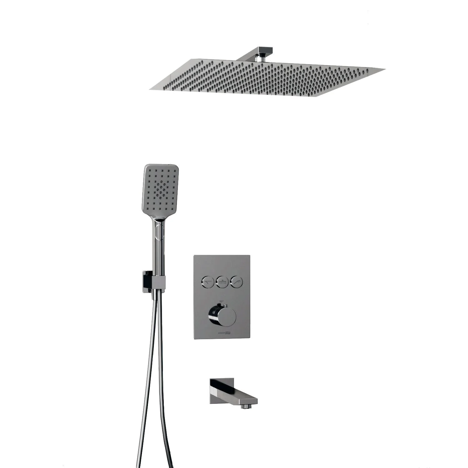 термостатический смеситель для ванны и душа Neime 1944 Thermo, Подключение шланга A086, Шланг для душа 1500 мм А087, Верхняя душевая насадка A119, Верхний излив для душа A090, Лейка 3-функциональная A126, Настенный излив для ванны A091