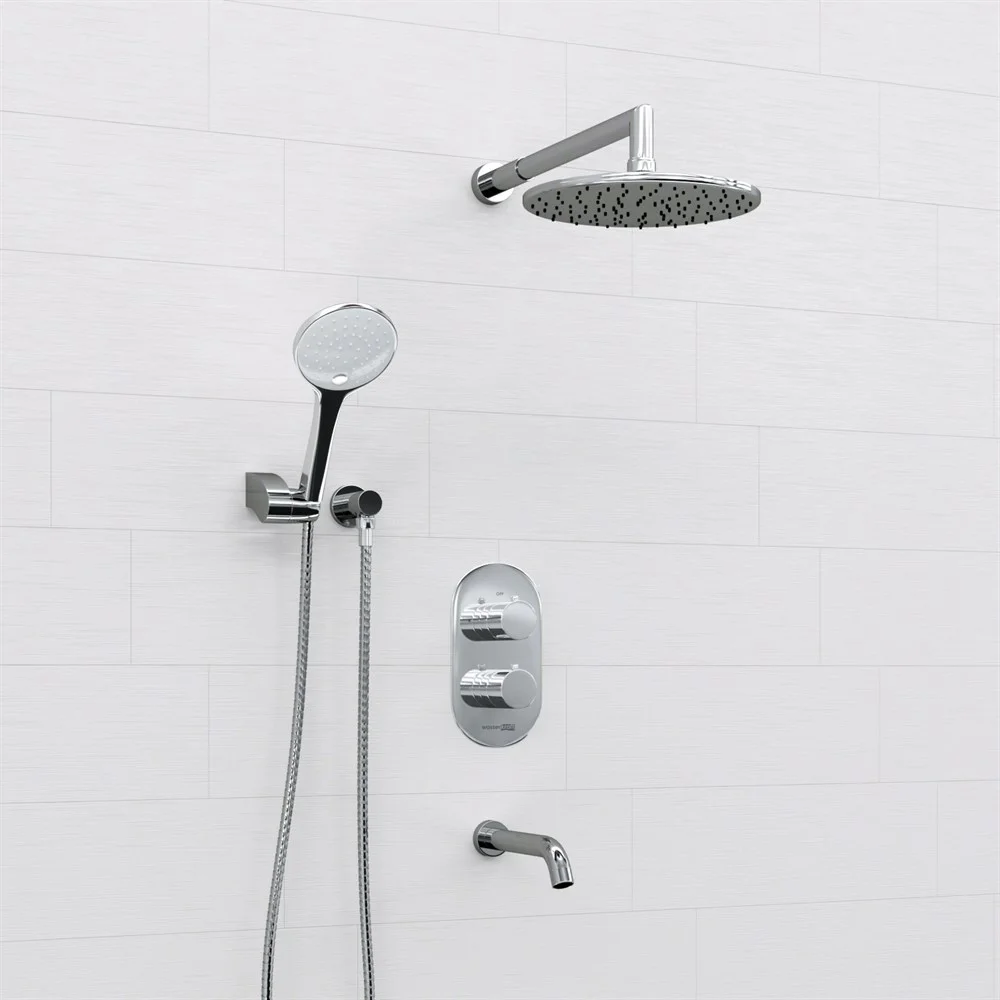 Термостатический картридж Vernet (Франция), Керамический поворотный переключатель на душ Flühs (Германия), Обратный клапан Neoperl, Переключатель на 3 выхода, Комплект скрытого монтажа, Наружная часть смесителя, Душевая насадка Ø 250 мм, 135 форсунок, ABS-пластик