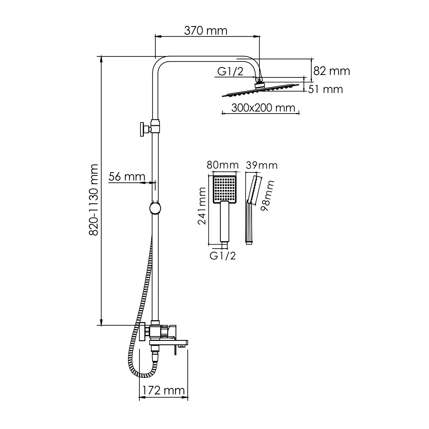 Длина душевого шланга, мм