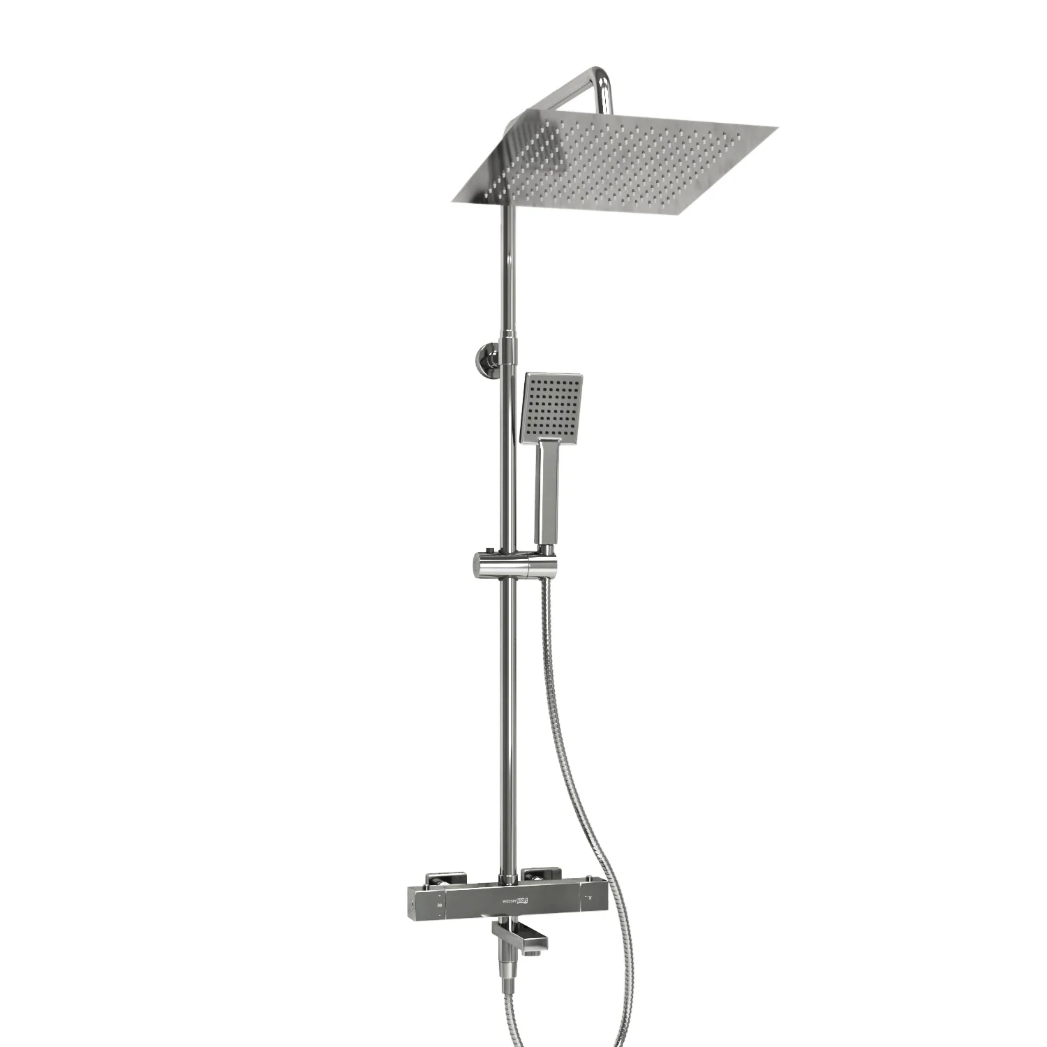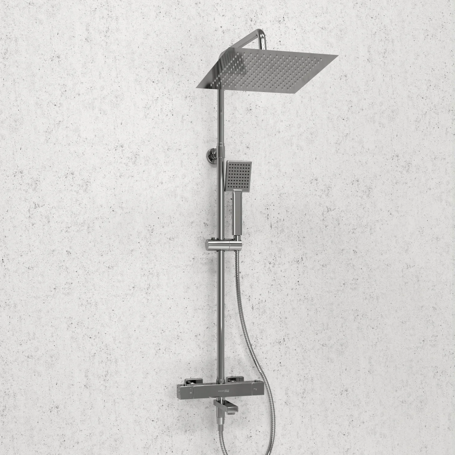 входит в комплект: - душевая насадка 300 x 300 мм, 196 форсунок, нержавеющая сталь; - стойка для душа, Ø 22 мм регулируемая по высоте; - лейка 1-функциональная с системой защиты от известковых отложений; - шланг металлический 1500 мм, подключение к лейке; - термостатический смеситель; - термостатический картридж Vernet (франция); - встроенный пластиковый аэратор Neoperl HONEYCOMB (германия) с регулируемым углом наклона струи; - обратный клапан Neoperl (германия); - керамический поворотный переключатель; - набор для монтажа.