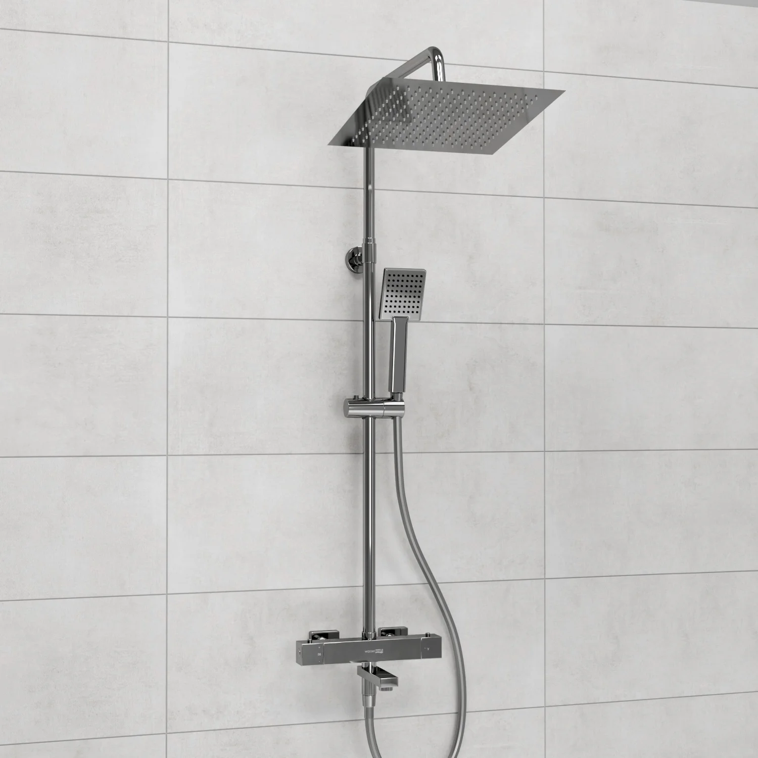 входит в комплект: - душевая насадка 300 x 300 мм, 196 форсунок, нержавеющая сталь; - стойка для душа, Ø 22 мм регулируемая по высоте; - лейка 1-функциональная с системой защиты от известковых отложений; - шланг пвх 1500 мм, подключение к лейке; - термостатический смеситель; - термостатический картридж Vernet (франция); - встроенный пластиковый аэратор Neoperl HONEYCOMB (германия) с регулируемым углом наклона струи; - обратный клапан Neoperl (германия); - керамический поворотный переключатель; - набор для монтажа.
