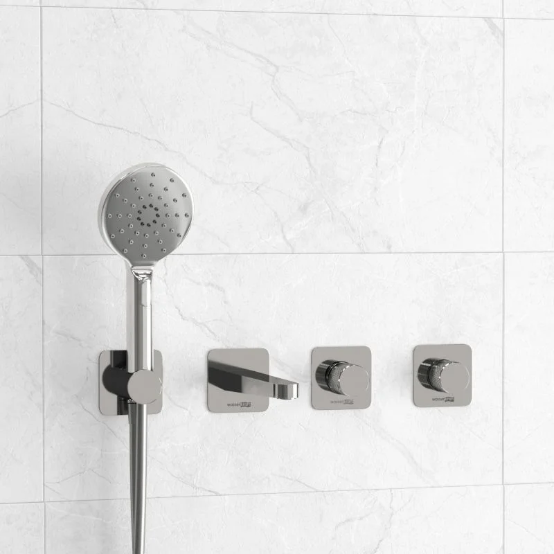 Смеситель для ванны и душа Mosel 4651, Переключатель на 2 выхода А293, Подключение шланга A271, Лейка 3-функциональная A127, Шланг для душа 1500 мм A087, Настенный излив для ванны A295