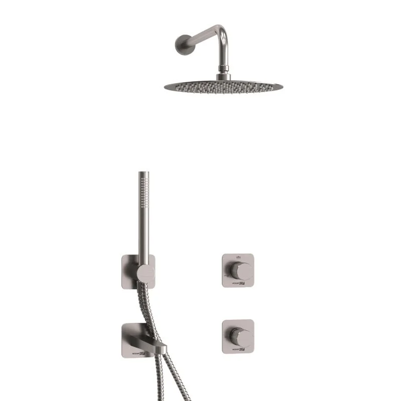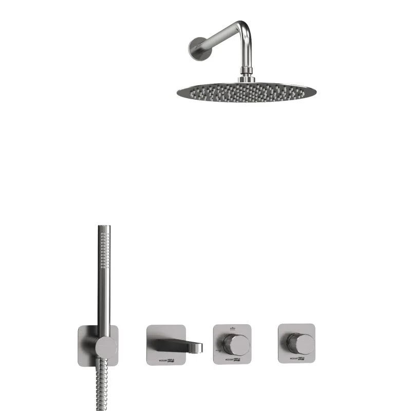 Смеситель для ванны и душа Tauber 6451, Переключатель на 3 выхода А297, Подключение шланга A275, Шланг для душа 1500 мм A100, Верхняя душевая насадка A121, Настенный верхний излив для душа A097, Лейка 1-функциональная A276, Настенный излив для ванны A298