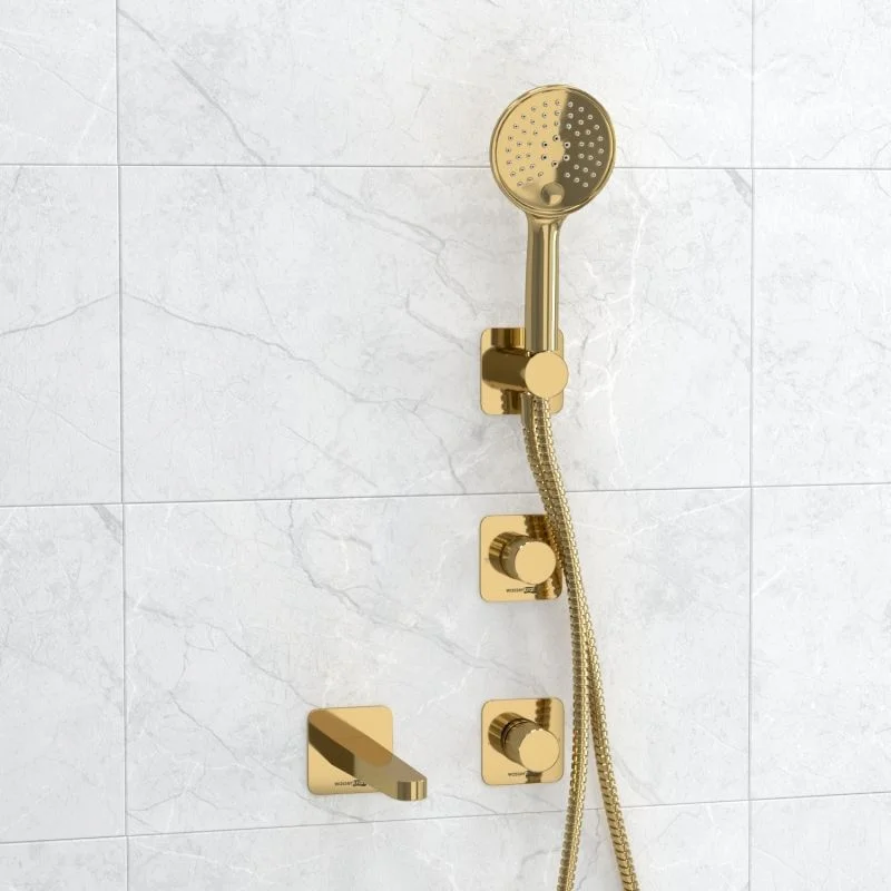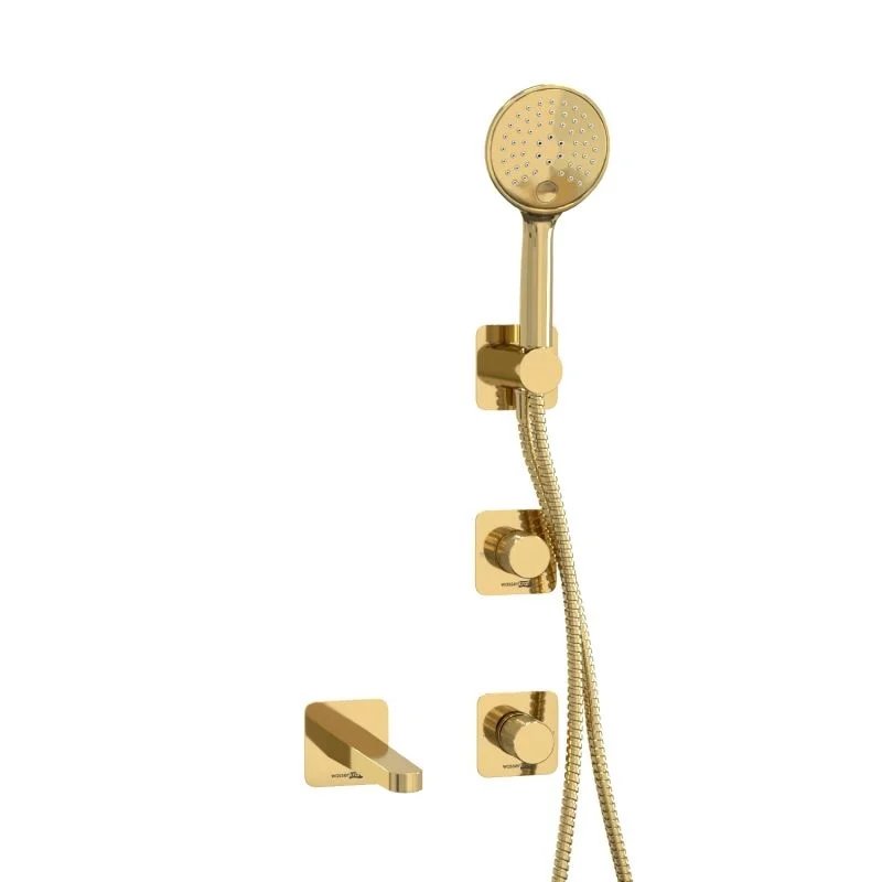 Смеситель для ванны и душа Ems 7651, Переключатель на 2 выхода А303, Подключение шланга A280, Лейка 3-функциональная A207, Шланг для душа 1500 мм A197, Настенный излив для ванны A308