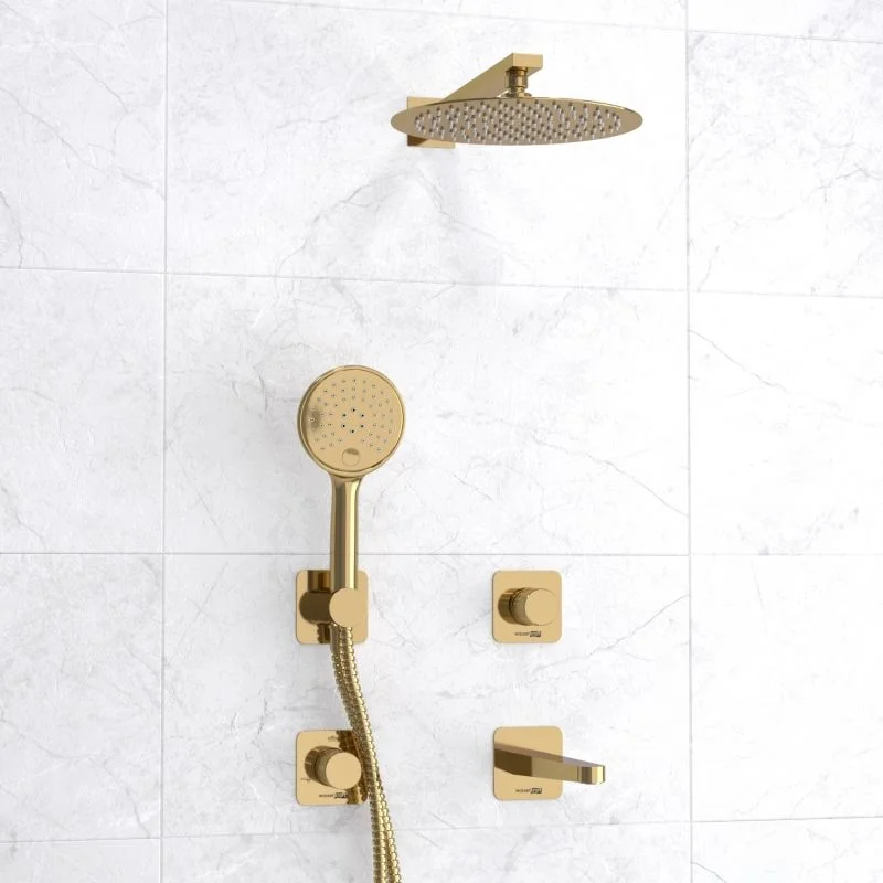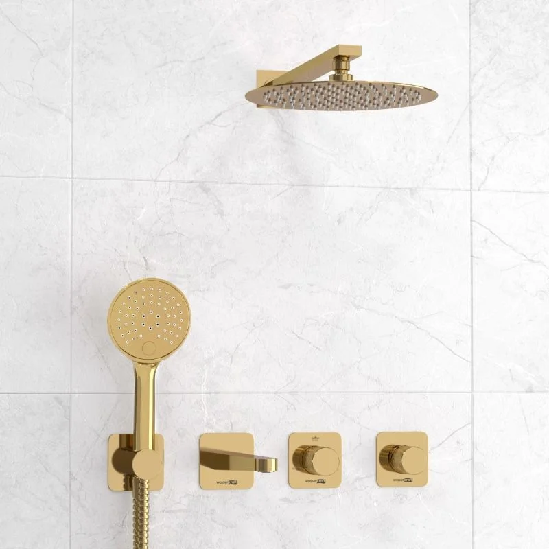 Смеситель для ванны и душа Ems 7651, Переключатель на 3 выхода А304, Подключение шланга A280, Шланг для душа 1500 мм A197, Верхняя душевая насадка A208, Настенный верхний излив для душа A183, Лейка 3-функциональная A207, Настенный излив для ванны A305