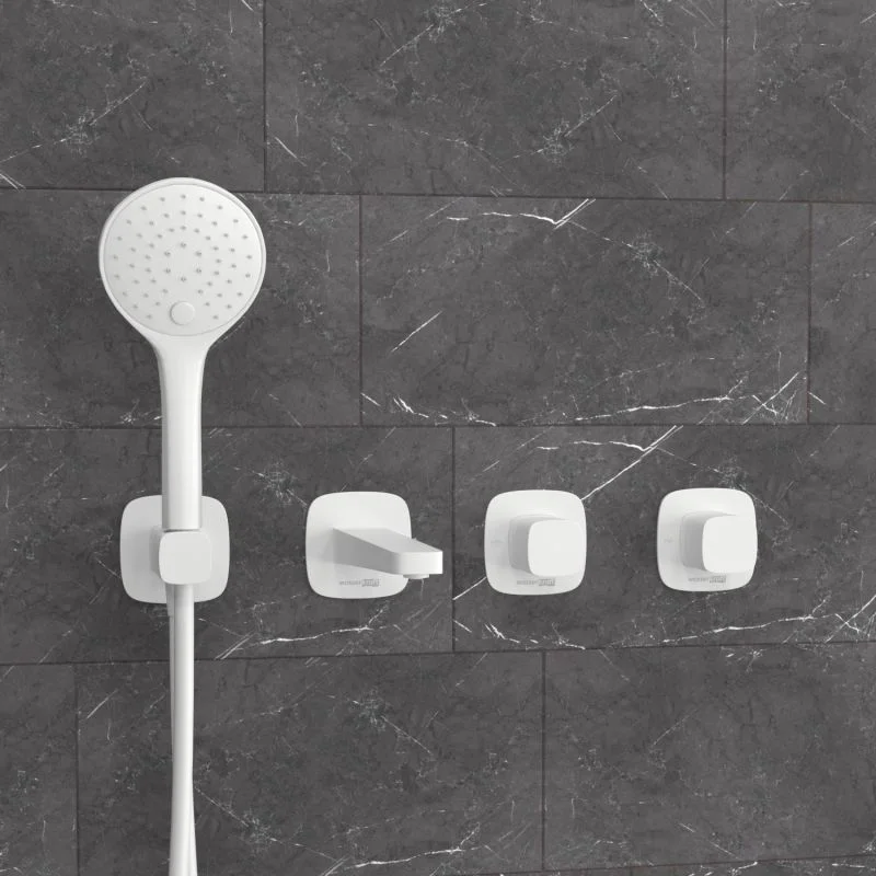 Смеситель для ванны и душа Saale 9551, Переключатель на 2 выхода А266, Подключение шланга A328, Лейка 3-функциональная A155, Шланг для душа 1500 мм A156, Настенный излив для ванны A316