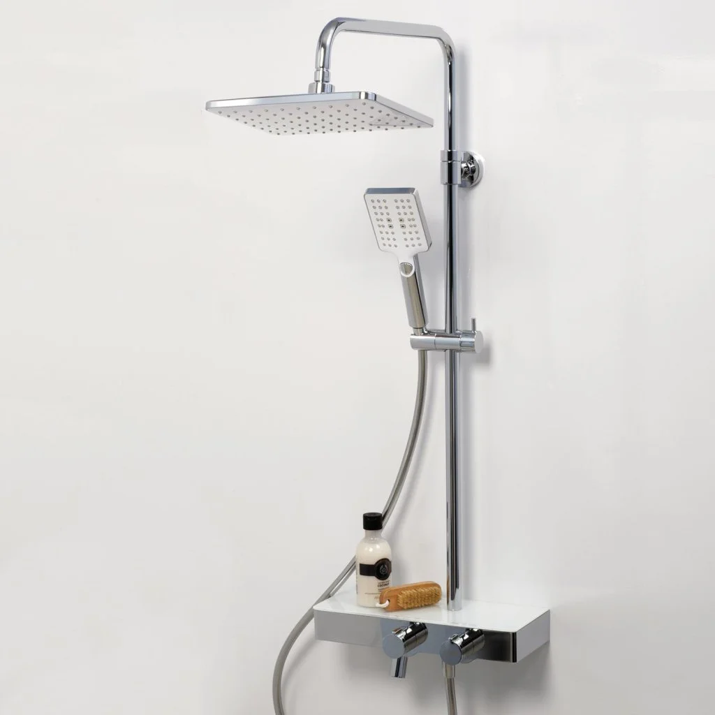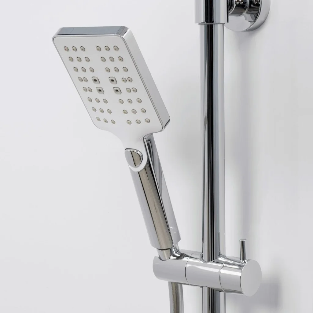 Входит в комплектДушевая насадка 280x185 мм, 80 форсунок, ABS-пластик Стойка для душа, Ø 24 мм регулируемая по высоте