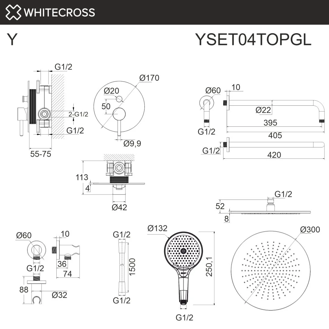 Душевая система WHITECROSS Y YSET04TOPGL скрытого монтажа, золото