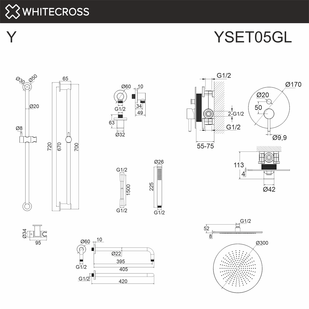 Душевая система WHITECROSS Y YSET05GL (золото) скрытого монтажа