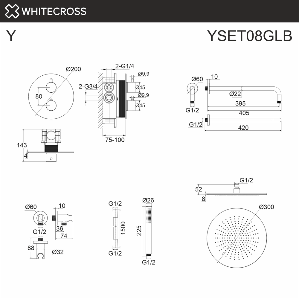 Душевая система WHITECROSS Y YSET08GLB (брашированное золото) термостатическая, скрытого монтажа