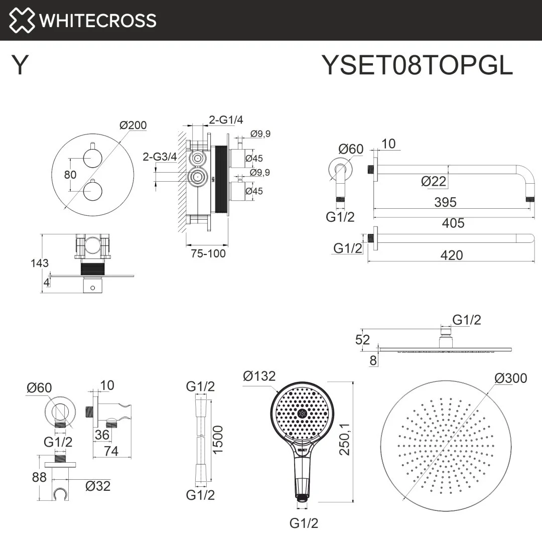 Душевая система WHITECROSS Y YSET08TOPGL скрытого монтажа, термостатическая, золото