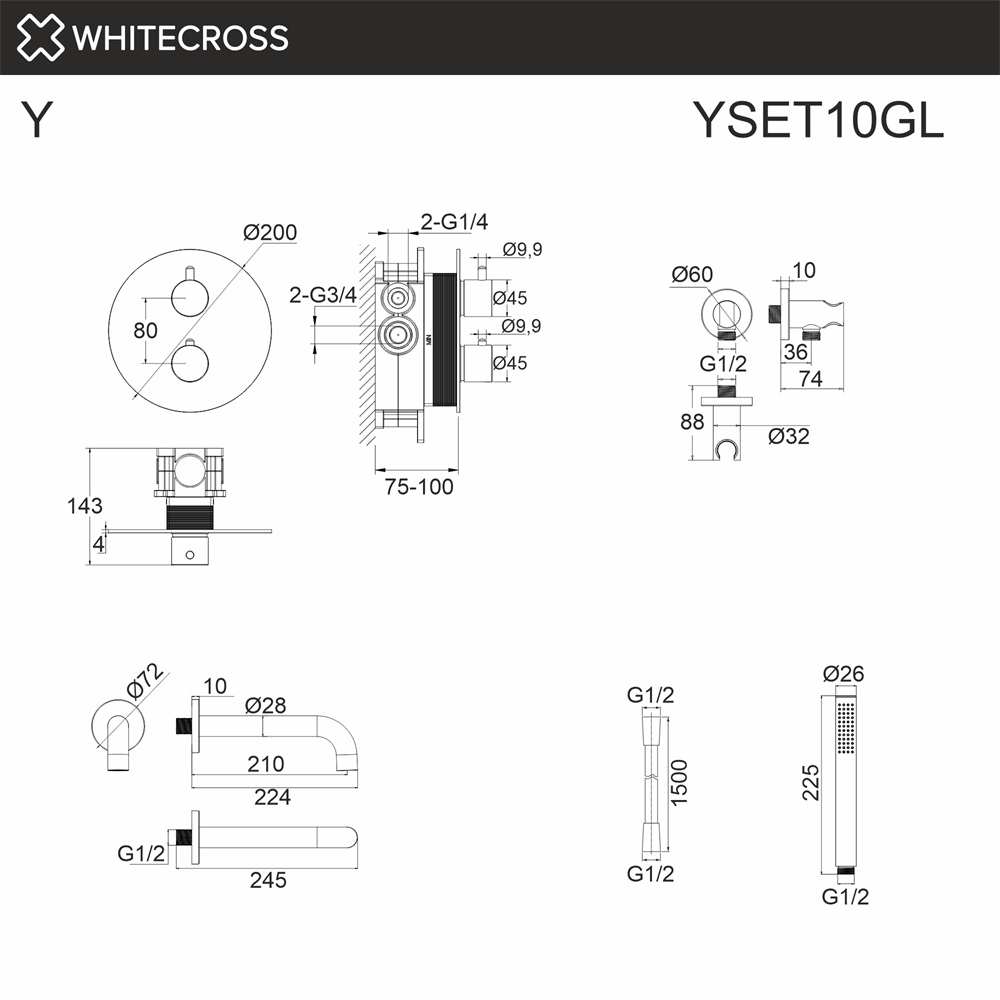 Смеситель для ванны WHITECROSS Y YSET10GL (золото) с ручным душем, термостатический, скрытого монтажа -->