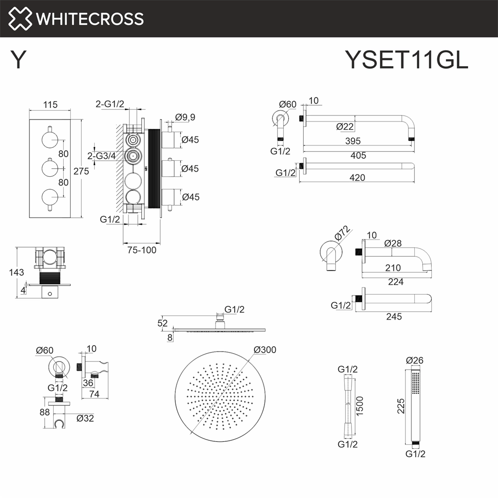 Душевая система WHITECROSS Y YSET11GL (золото) термостатическая, скрытого монтажа