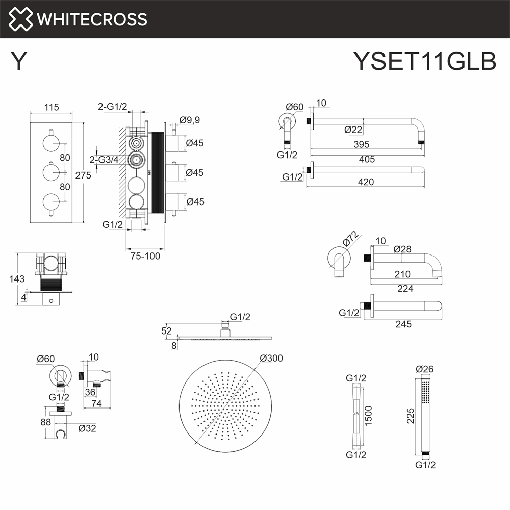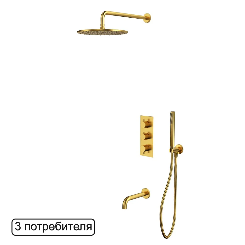 Душевая система WHITECROSS Y YSET11GLB (брашированное золото) термостатическая, скрытого монтажа