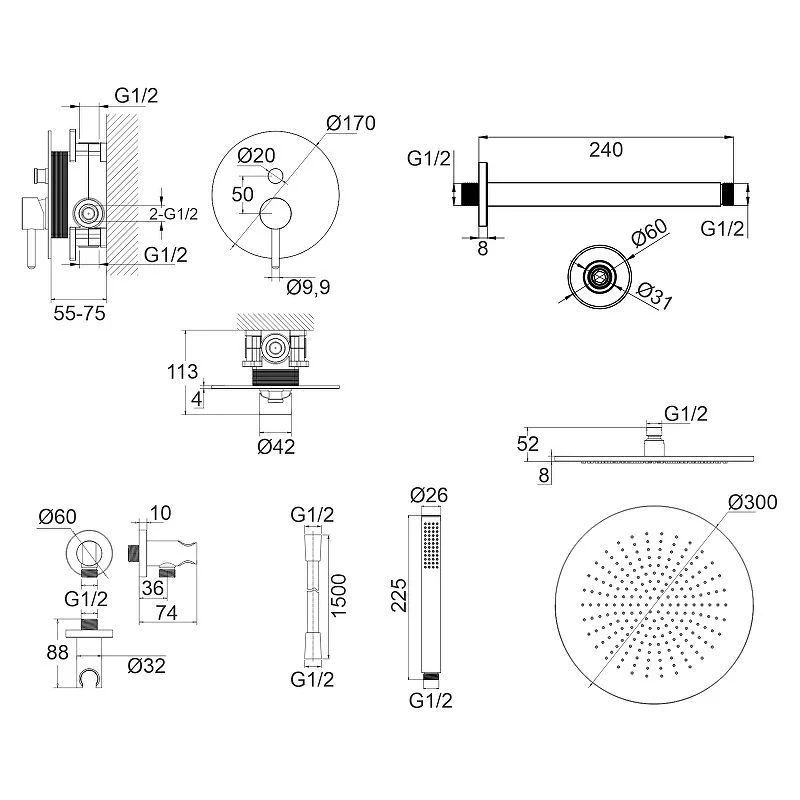 Душевая система WHITECROSS Y YSET12BL скрытого монтажа, черный матовый