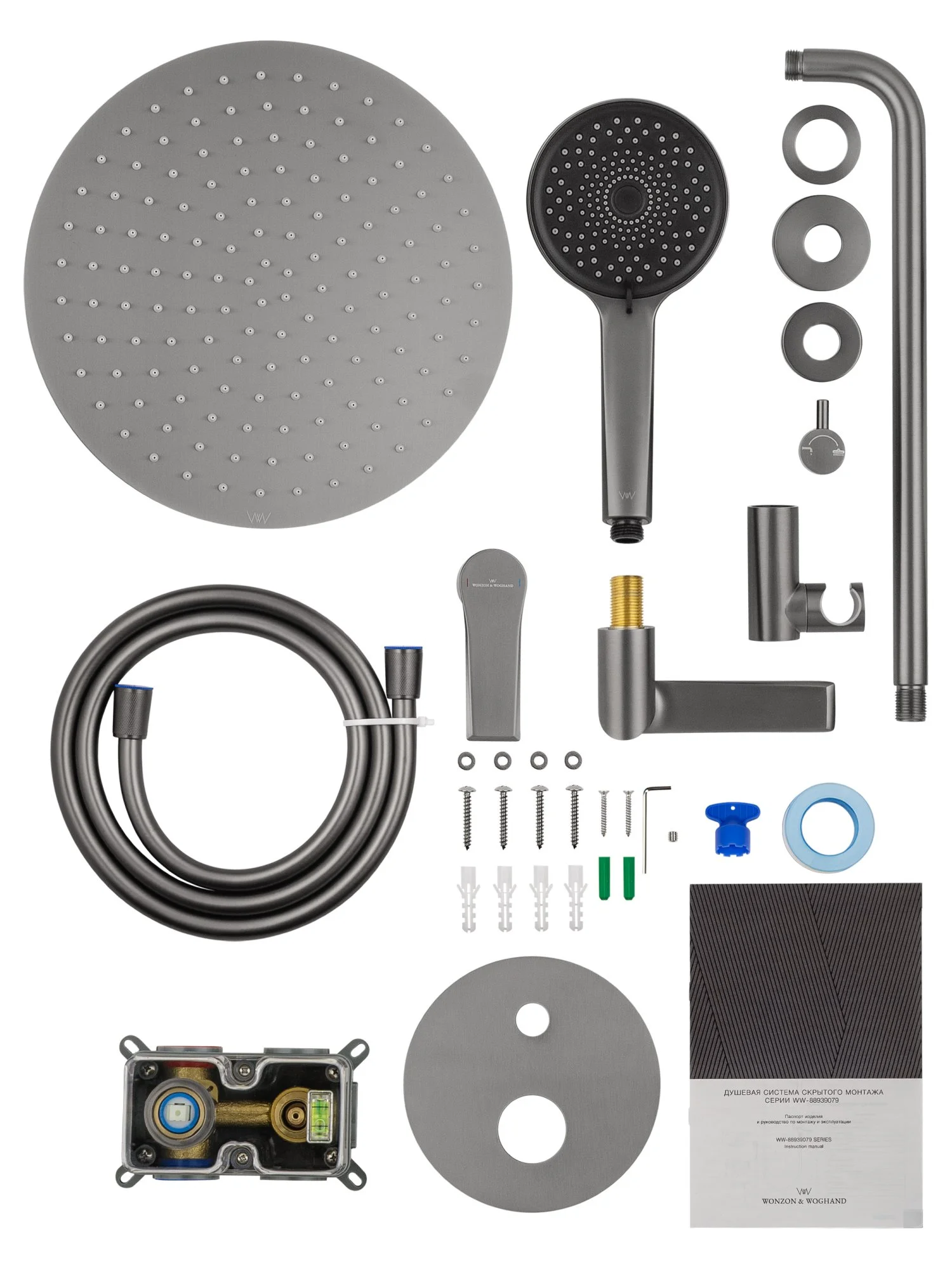 смеситель, душевой шланг, держатель для душа, верхний душ, душевая лейка, монтажный комплект