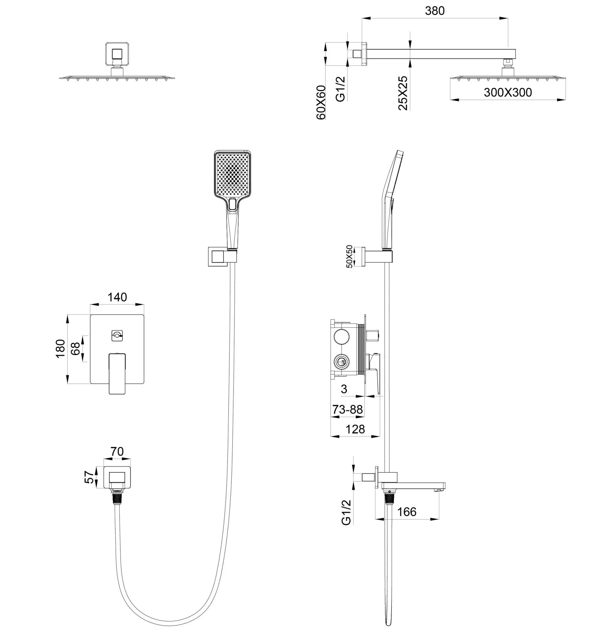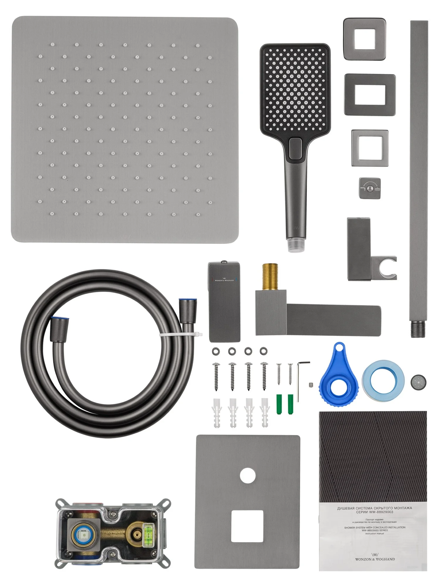 смеситель, душевой шланг, держатель для душа, верхний душ, душевая лейка, монтажный комплект